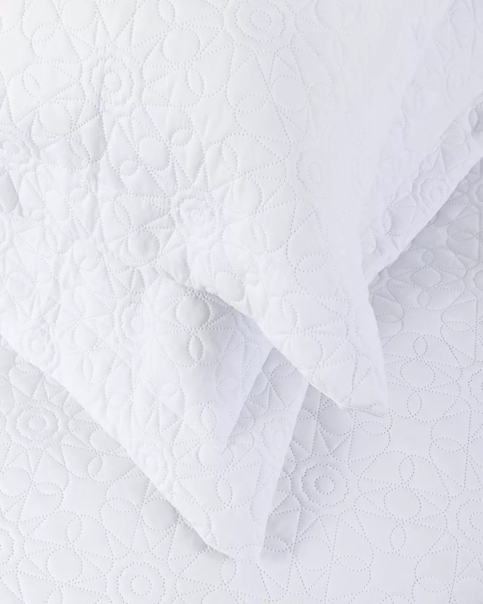 Σετ κουβερλί καπιτονέ σε λευκό χρώμα με μοντέρνο σχέδιο και φάσες στις 3 πλευρές. κατασκευασμένο από 100% stonewashed microfiber 90 γρ./μ² με γέμιση polyester 120 γρ./μ², που προσφέρει απαλή αίσθηση και άνεση στη χρήση. ιδανικό σκέπασμα για ανοιξιάτικους και καλοκαιρινούς μήνες.