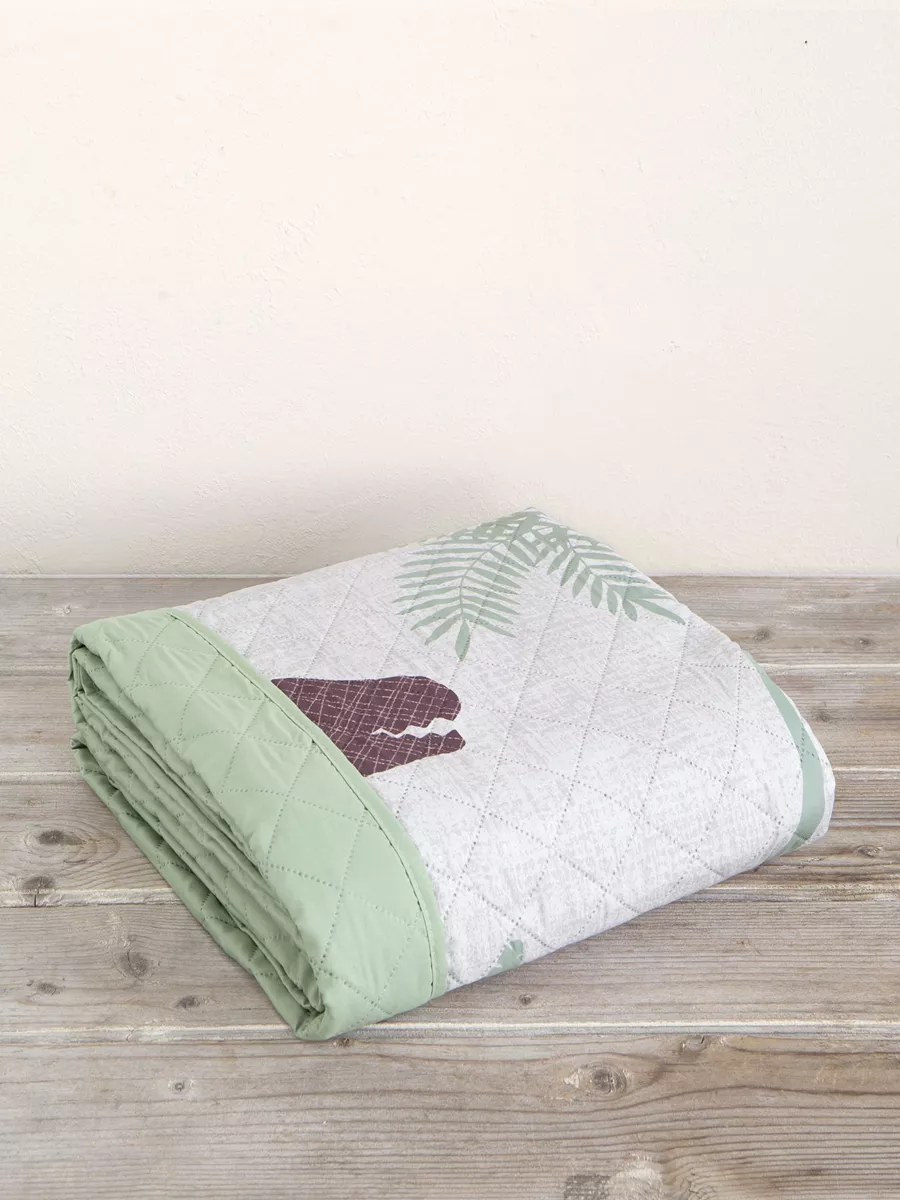 Το παιδικό κουβερλί dino boy ντύνει το παιδικό κρεβάτι με ένα πολύ μοντέρνο πάνελ τυπωτό σχέδιο με δεινόσαυρους σε γήινους τόνους του πράσινου και του καφέ. Οι φιγούρες τους που παραπέμπουν στον κόσμο της προϊστορίας κεντρίζουν το ενδιαφέρον και την προσοχή των παιδιών και δημιουργούν διάθεση για παιχνίδι. Ολοκληρώστε την όμορφη εικόνα συνδυάζοντας τα ασορτί σεντόνια του σχεδίου.