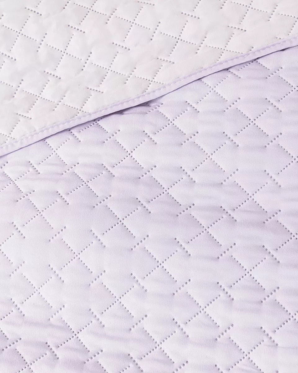 Κουβερλί καπιτονέ 2 όψεων σε λιλά / ροζ χρώμα με μοντέρνο σχέδιο. κατασκευασμένο από 100% washed microfiber 80 γρ./μ² με γέμιση polyester 120 γρ./μ², που το καθιστά απαλά, ζεστό και άνετο στη χρήση. ιδανικό σκέπασμα για ανοιξιάτικους και καλοκαιρινούς μήνες.