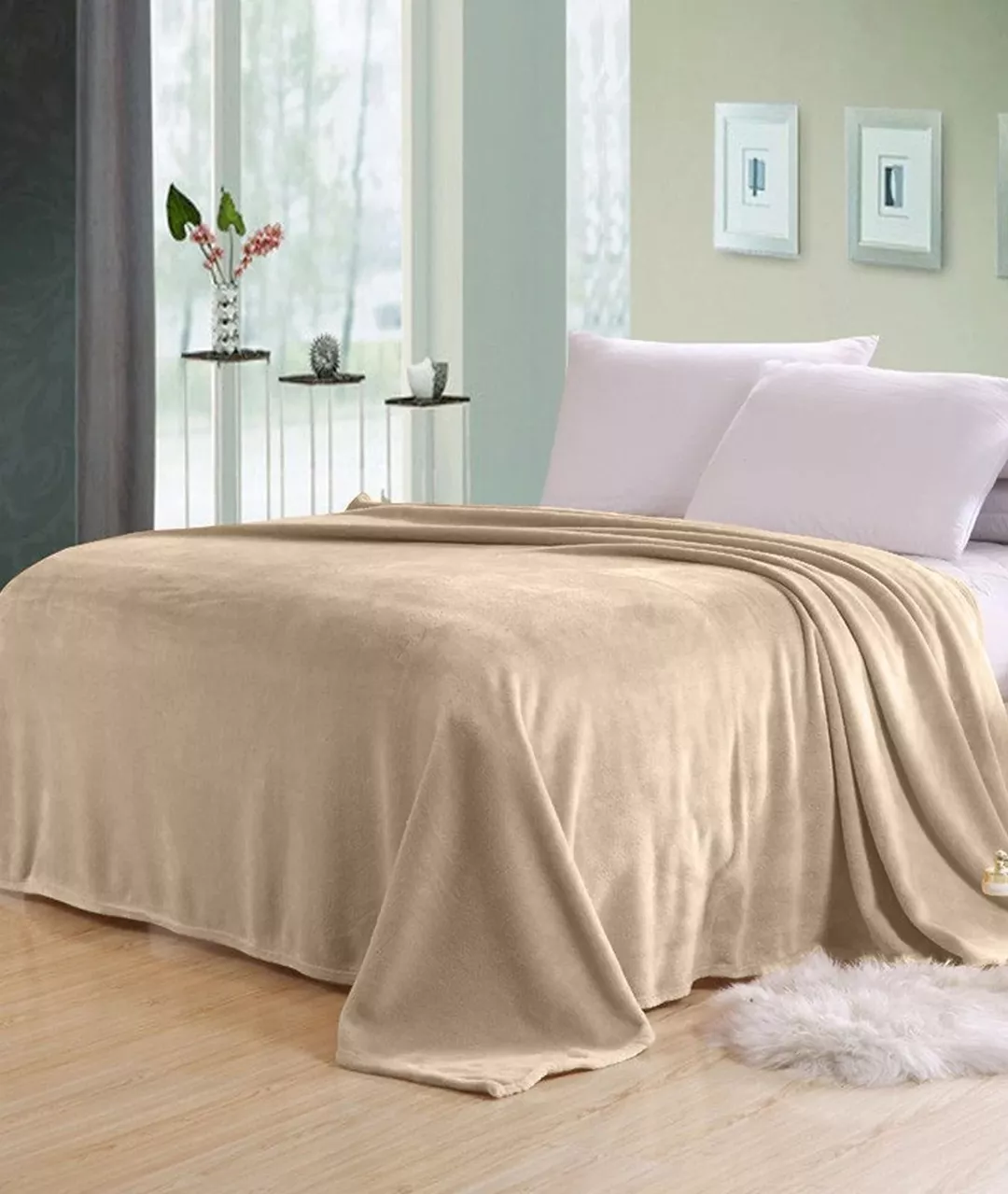 Κουβέρτα βελουτέ 650gr/m2 υπέρδιπλη Super soft Beige