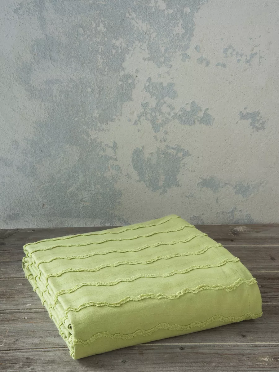 η βαμβακερή κουβέρτα oleada green σε φωτεινό πράσινο χρώμα, φέρνει ευχάριστη αίσθηση χαλάρωσης και ηρεμίας στο υπνοδωμάτιο. το όμορφο ανάγλυφο σχέδιό της με κύματα δημιουργεί ένα όμορφο παιχνίδισμα των υφών της. είναι μονόχρωμη και μπορεί να προσαρμοστεί πολύ εύκολα σε διαφορετικά στιλ διακόσμησης και να αναδείξει τον χώρο. μια κουβέρτα που ντύνει το κρεβάτι με ζεστασιά και προσφέρει μια φρέσκια διακοσμητική πινελιά, ιδανική για την άνοιξη και το καλοκαίρι.
