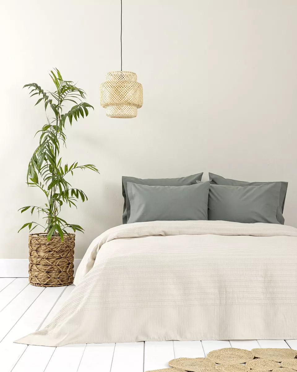 Κουβέρτα πικέ σε μπεζ χρώμα. κατασκευασμένη από 100% βαμβάκι με δίκλωνα νήματα, 200 γρ./μ², με ειδικό φινίρισμα garment wash που προσφέρει πολύ απαλή αίσθηση και δεν επηρεάζεται στο πλύσιμο. ιδανικό σκέπασμα για ανοιξιάτικους και καλοκαιρινούς μήνες.