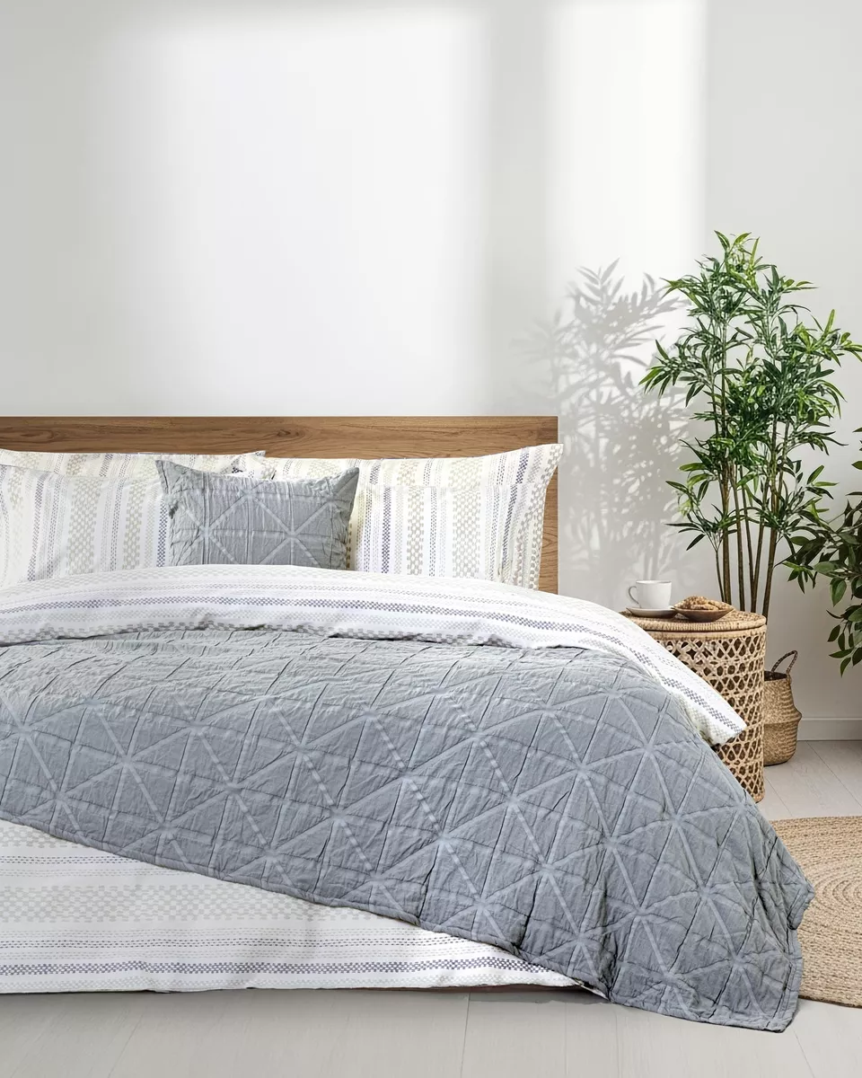 Κουβέρτα matelassé σε χρώμα γκρι με μοντέρνο σχέδιο. κατασκευασμένη από 100% βαμβάκι, 300 γρ./μ², με ειδικό φινίρισμα garment wash για πολύ απαλή αίσθηση που δεν επηρεάζεται στο πλύσιμο. ιδανικό σκέπασμα για ανοιξιάτικους και καλοκαιρινούς μήνες.