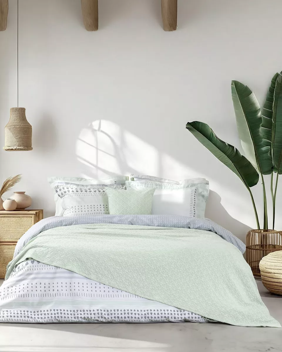 Κουβέρτα matelassé σε χρώμα μέντα με μοντέρνο σχέδιο. κατασκευασμένη από 100% βαμβάκι, 300 γρ./μ², με ειδικό φινίρισμα garment wash για πολύ απαλή αίσθηση που δεν επηρεάζεται στο πλύσιμο. ιδανικό σκέπασμα για ανοιξιάτικους και καλοκαιρινούς μήνες.