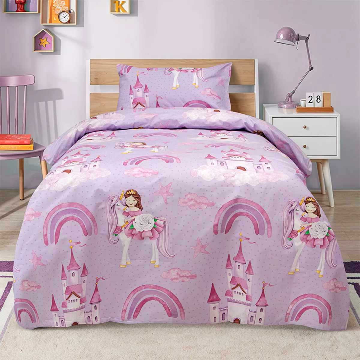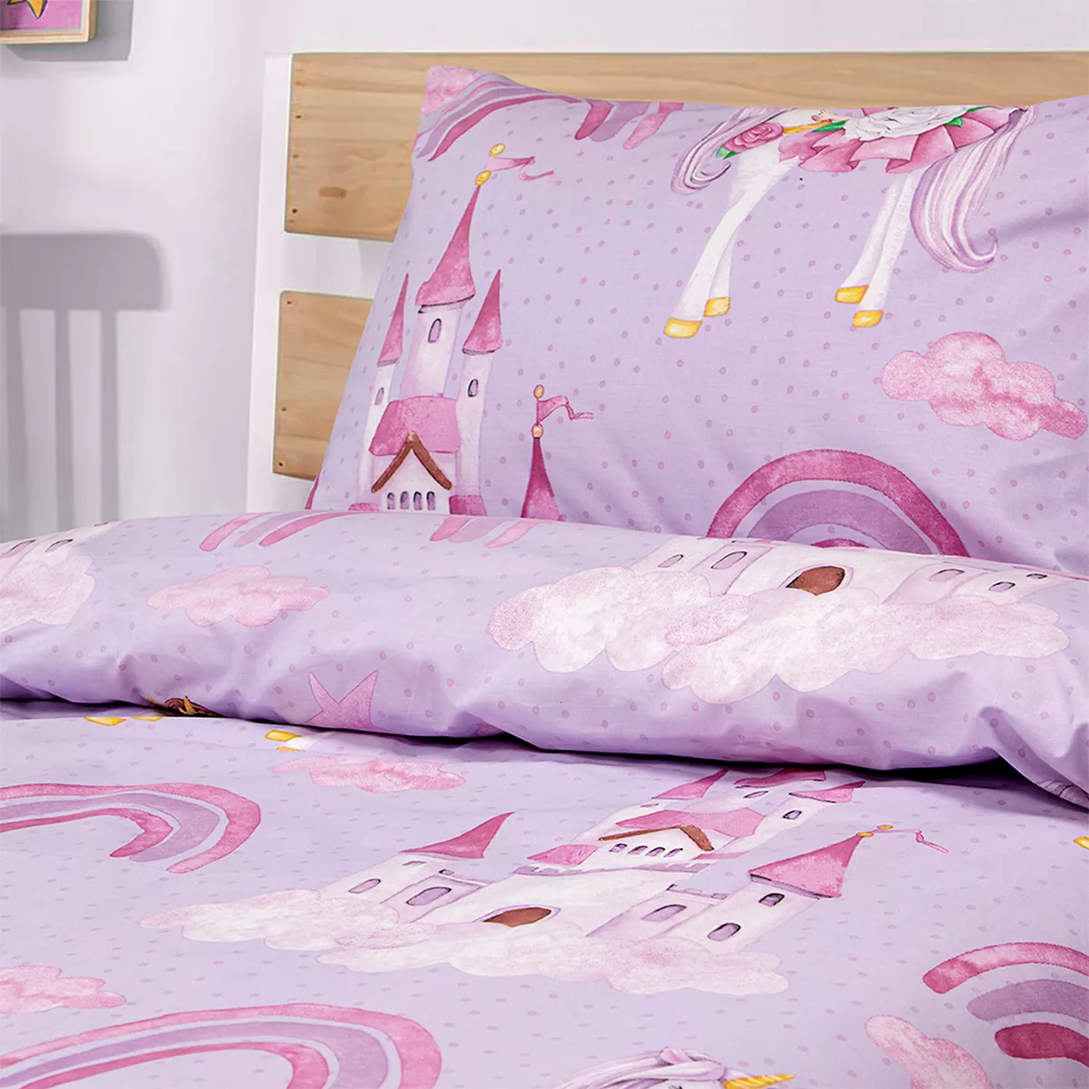Σετ παιδική παπλωματοθήκη ημίδιπλη Dreamy Castleland, από 100% βαμβάκι, 144 κλωστές.