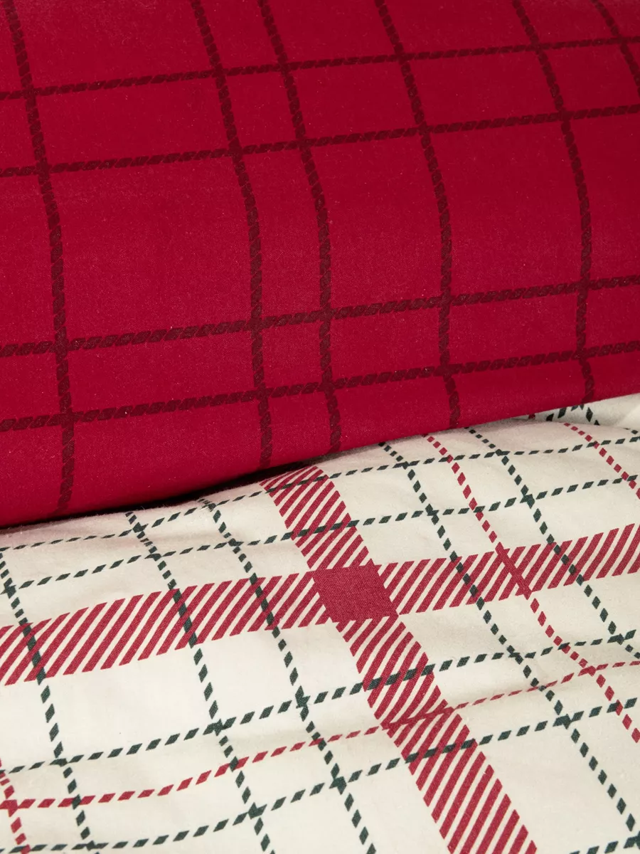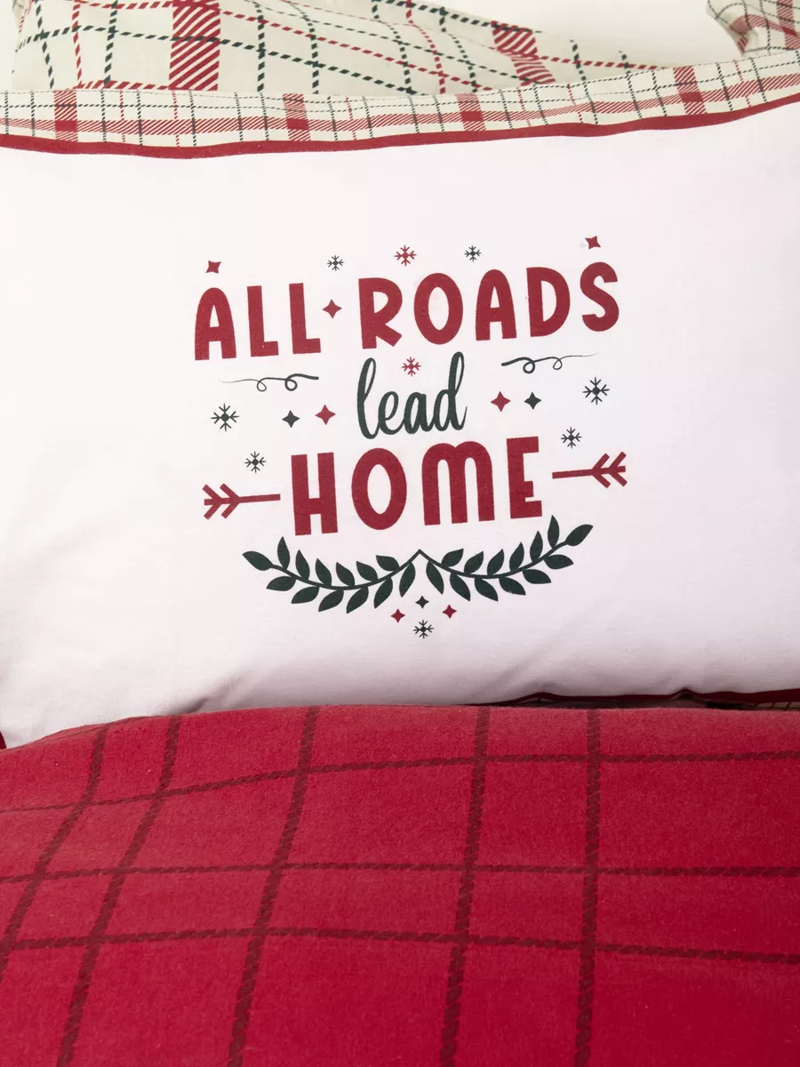 Το φανελένιο σετ παπλωματοθήκης home bliss διαθέτει ένα κλασικό καρό μοτίβο που αποπνέει διαχρονική κομψότητα και θαλπωρή. Ο συνδυασμός του έντονου κόκκινου με το απαλό κρεμ, δημιουργεί μια ατμόσφαιρα γιορτινή, ενώ το μήνυμα "all roads lead home" στις μαξιλαροθήκες προσθέτει μια προσωπική και συγκινητική πινελιά. Ετοιμαστείτε λοιπόν να φέρετε τη μαγεία των γιορτών και την ζεστασιά των Χριστουγέννων στο υπνοδωμάτιό σας με το σετ παπλωματοθήκης everlove.