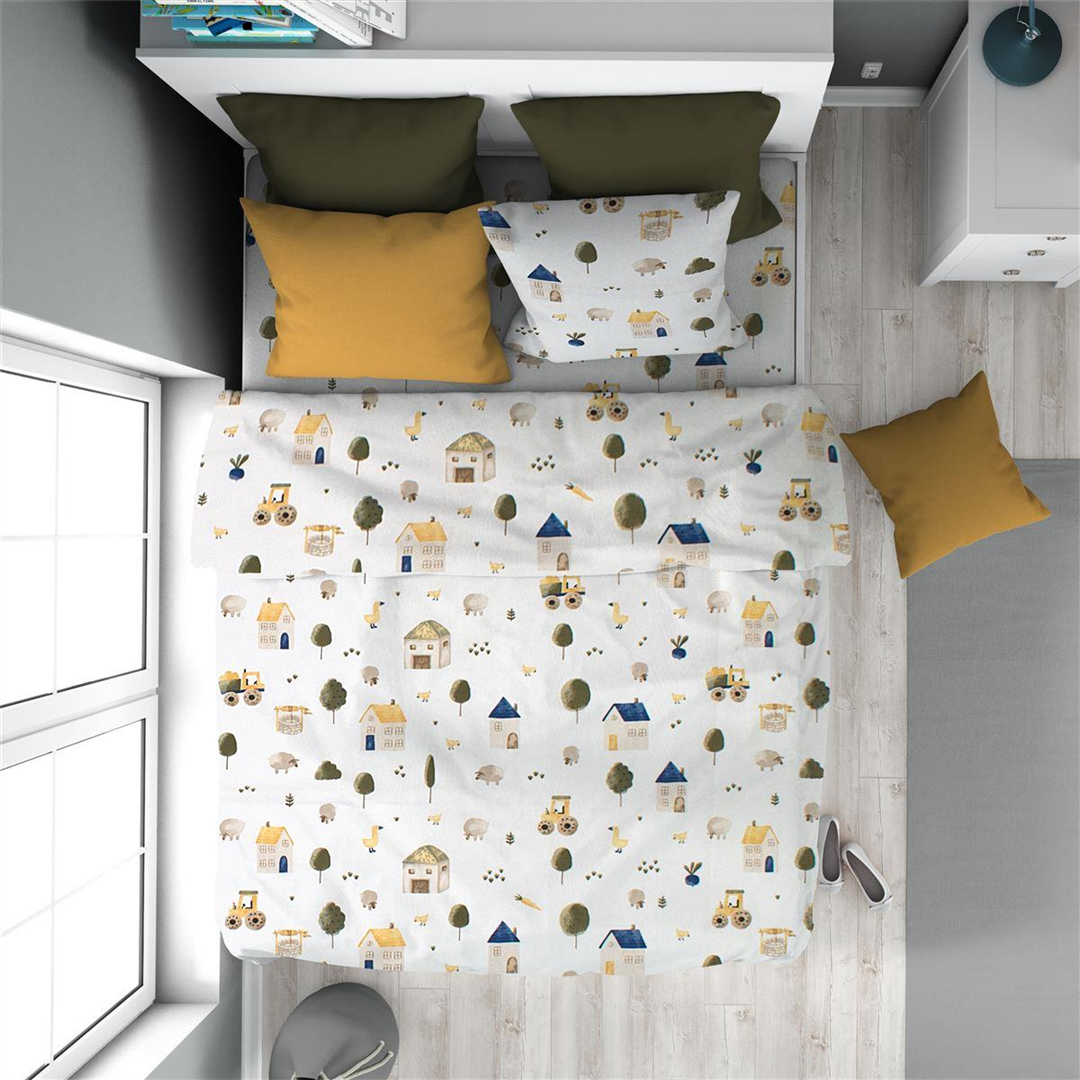 Παπλωματοθήκη Εμπριμέ kids Village 579 160X240 White-Green 100% Cotton