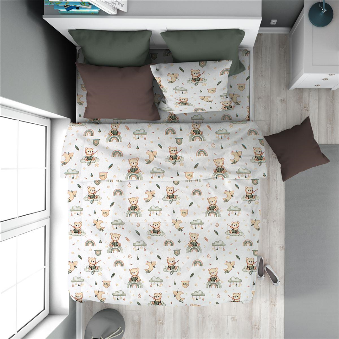 Παπλωματοθήκη Εμπριμέ kids Cloudy Bear 581 160X240 White-Olive 100% Cotton