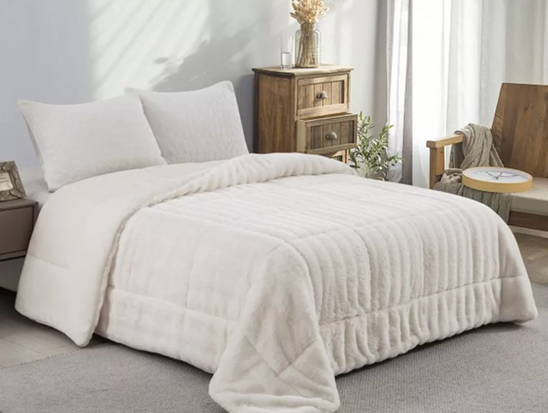 Στο επάνω μέρος είναι οικολογική γούνα rabbit 350gsm και το κάτω μέρος flannel  180gsm.