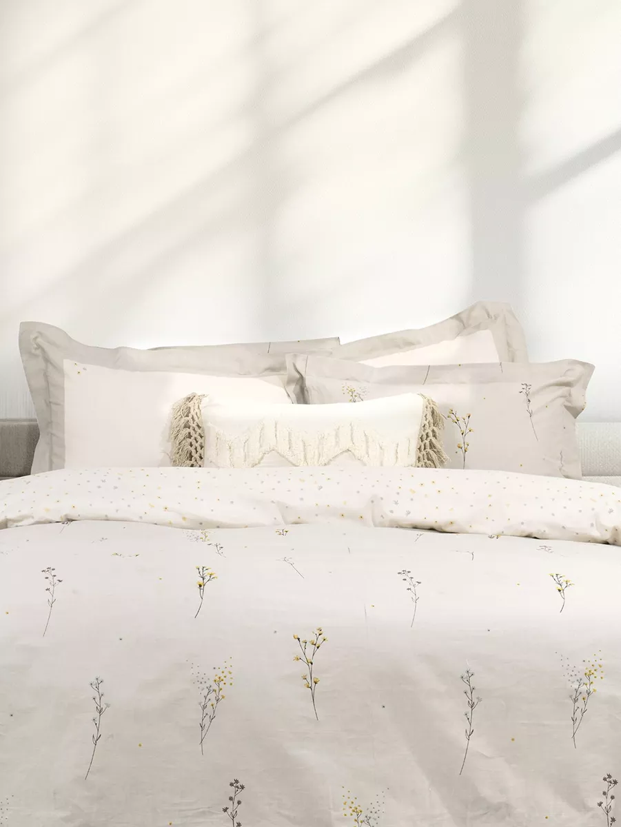 Το πάπλωμα delicate έχει μοναδικό σχέδιο που αποτελείται από λεπτεπίλεπτα, μικρά λουλούδια και φυλλαράκια σε γήινες και παστέλ αποχρώσεις του γκρι, του κίτρινου και του λιλά. Η πίσω όψη του, διαθέτει ένα διακριτικό floral μικρομοτίβο σε παστέλ επίσης αποχρώσεις. Σας δίνεται λοιπόν η δυνατότητα αλλαγής της εικόνας του δωματίου, με μια μόνο αλλαγή στην πλευρά στρωσίματος του παπλώματος. Το διακριτικό floral μοτίβο του και οι απαλές και φυσικές αποχρώσεις του έχουν καταπραϋντική επίδραση και συμβάλλουν στην διαμόρφωση ενός χώρου ηρεμίας και ξεκούρασης. Αυτό το σχέδιο εντάσσεται στην τάση της soft romantic διακόσμησης, που έχει επανέλθει στην κορυφή των προτιμήσεων στη μόδα του σπιτιού, προσδίδοντας μια αίσθηση ρομαντισμού και φρεσκάδας στον χώρο σας.