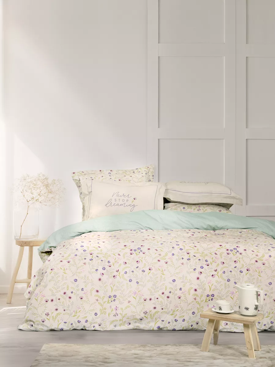 Το πάπλωμα dream garden είναι ένας πραγματικός καμβάς της φύσης. Έχει πλούσιο και ζωντανό μοτίβο με πολύχρωμα λουλούδια σε αποχρώσεις του ροζ, του μωβ και του πράσινου να απλώνονται σε ένα απαλό, κρεμ φόντο. Η δεύτερη όψη του διαθέτει μικρομοτίβο στο χρώμα της μέντας που έρχεται σε μια όμορφη αντίθεση με την πάνω πλευρά του παπλώματος και δίνει επίσης μια εναλλακτική στο στρώσιμο του κρεβατιού για μια διαφορετική εικόνα του χώρου. Μετατρέψτε το υπνοδωμάτιό σας σε έναν ονειρεμένο κήπο με το πάπλωμα dream garden και απολαύστε μια απαλή και δροσερή αίσθηση που εξασφαλίζει έναν ξεκούραστο και ήρεμο ύπνο.