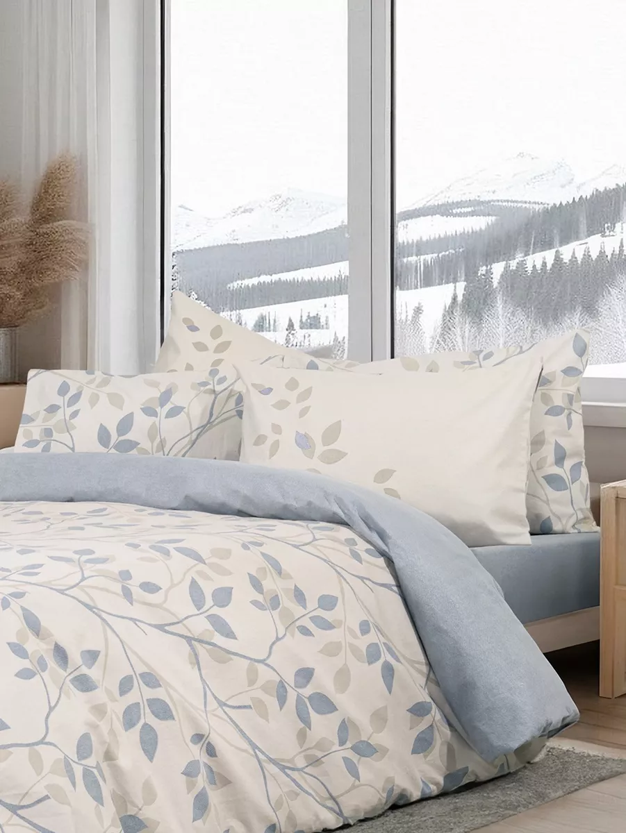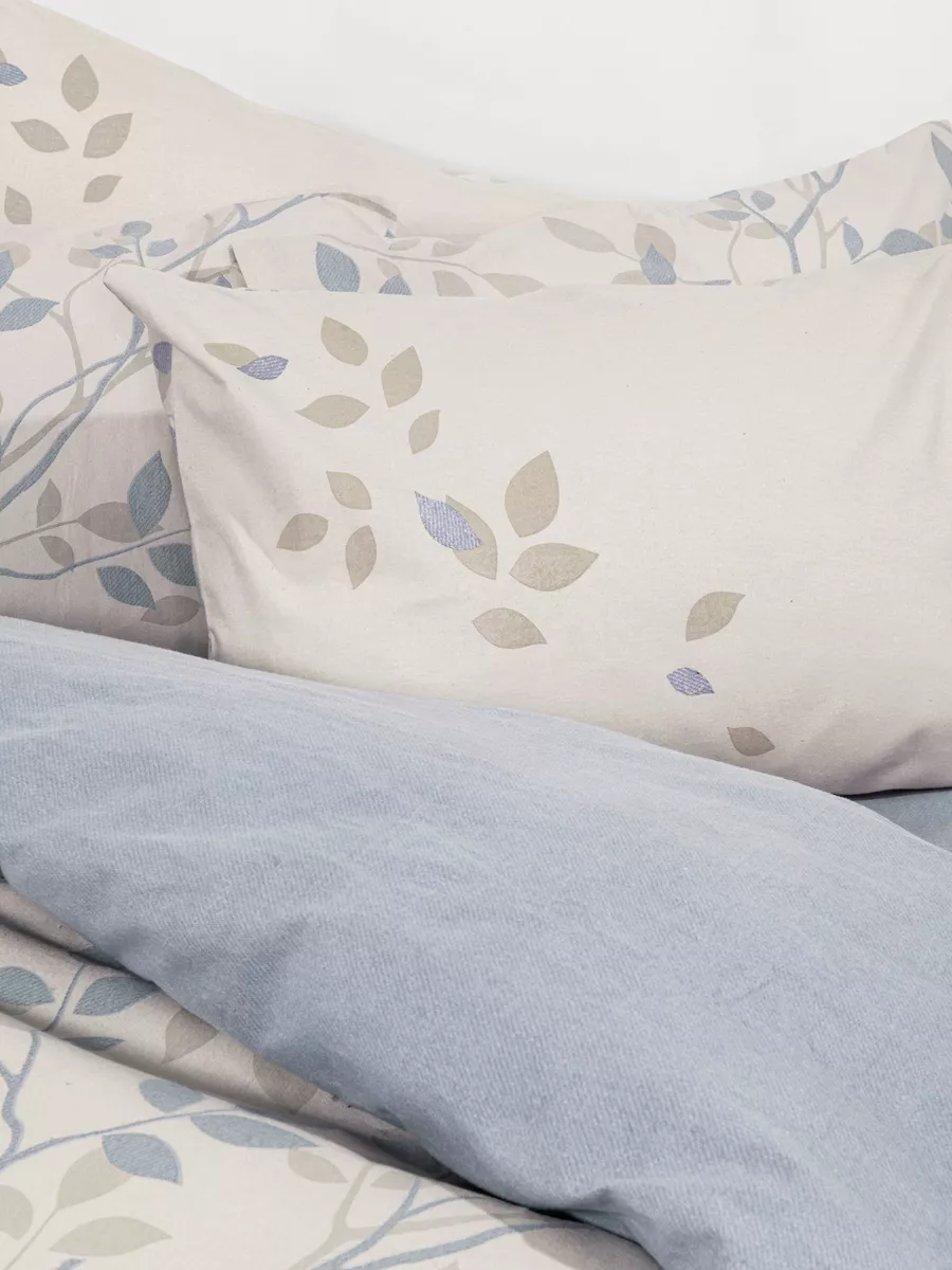 Τα φανελένια σεντόνια high up έχουν ένα ανάλαφρο και αιθέριο σχέδιο, εμπνευσμένο από τη φύση, με κλαδιά που απλώνονται σε ένα φωτεινό, κρεμ φόντο. Η ήρεμη παλέτα του, με φύλλα σε απαλό μπλε και γήινες αποχρώσεις του μπεζ, δημιουργεί μια αίσθηση χαλάρωσης και φρεσκάδας, ιδανική για κάθε υπνοδωμάτιο. Οι μαξιλαροθήκες του σετ έχουν λιτό πάνελ σχέδιο στην μία τους όψη, ενώ η δεύτερη όψη τους έχει το ίδιο μοτίβο με το πανωσέντονο, δίνοντας την δυνατότητα επιλογής στο στρώσιμο και προσθέτοντας μια αναβάθμιση στην αισθητική του σχεδίου. Τα σεντόνια high up είναι σχεδιασμένα για να προσφέρουν έναν ήρεμο και αναζωογονητικό ύπνο, αγκαλιάζοντάς σας με την απαλή τους υφή, σε όλη τη διάρκεια του χειμώνα.