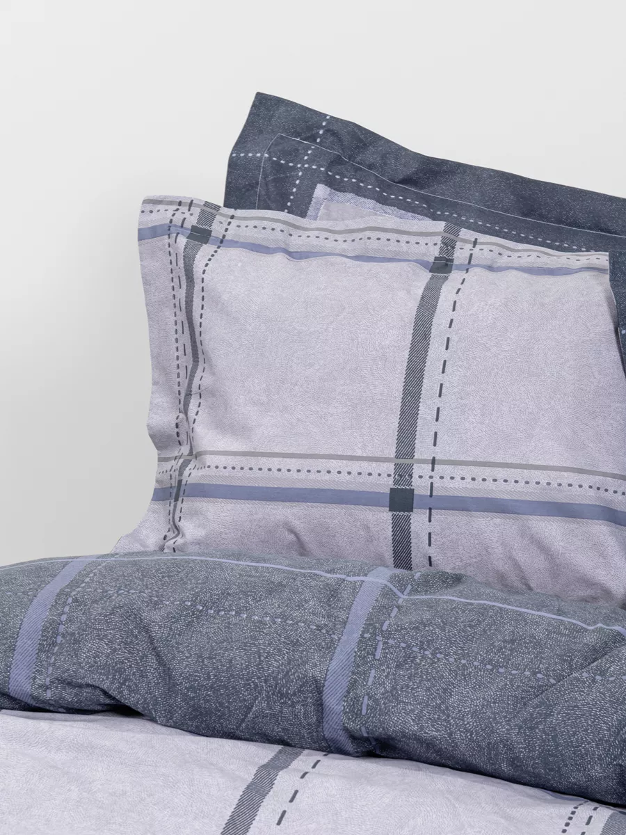 Τό βαμβακερό σετ σεντονιών whilow είναι κάτι περισσότερο από ένα απλό λευκό είδος, είναι μια δήλωση στυλ που συνδυάζει την τέχνη με την απόλυτη άνεση. Το μοτίβο του είναι μια σύγχρονη σύνθεση που θυμίζει έναν αφηρημένο καμβά. Οι γραμμές ενός κλασικού καρό σχεδίου αποκτούν μια ανάγλυφη, σχεδόν "ζωγραφική" υφή σε μια παλέτα από παγωμένο γκρι - μπλε και απαλό γκρι. Αυτή η καλλιτεχνική πινελιά δίνει στο σχέδιο βάθος και χαρακτήρα. Πλουτίζεται με τις oxford μαξιλαροθήκες που έχουν λιτό πάνελ μοτίβο στην μία τους όψη, ενώ στη δεύτερη όψη τους επαναλαμβάνεται το σχέδιο του πανωσέντονου. Επιλέγοντας το σετ σεντονιών whillow δημιουργείτε έναν ποιοτικό και στιλάτο χώρο, ικανό να σας εξασφαλίσει την καθημερινή σας ξεκούραση.