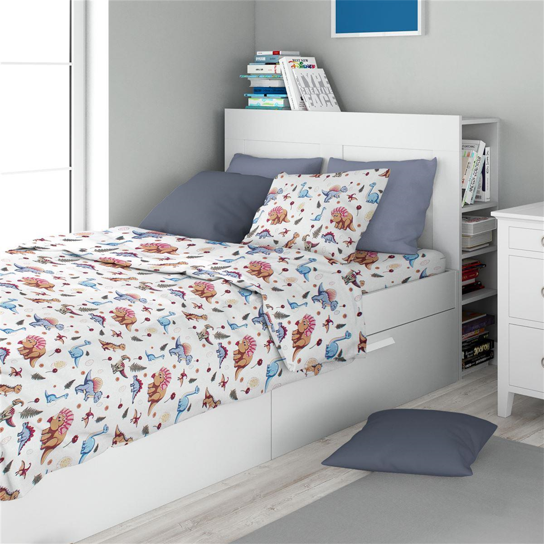 Σεντόνια Εμπριμέ Σετ 2 τεμ kids Dinosaur 519 160X240 White-Blue 100% Cotton
