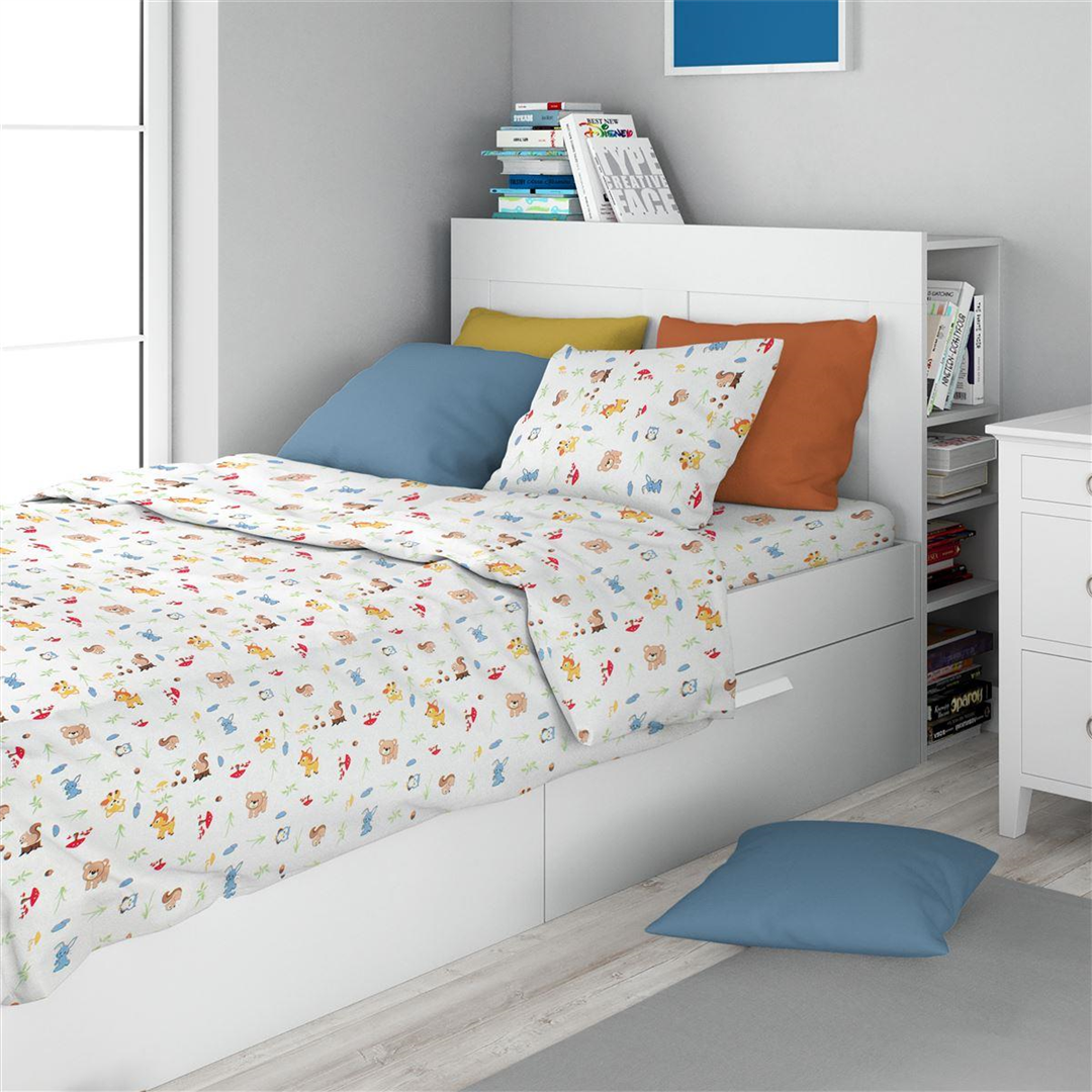Παιδικό φανελένιο σετ σεντόνια 3 τεμαχίων που περιέχει: 2τεμ. σεντόνια Flat για μονό κρεβάτι διαστάσεων 160Χ240 cm και 1τεμ. μαξιλαροθήκη διαστάσεων 50Χ70 cm. Κατασκευασμένο από 100% βαμβακερό φανελένιο ύφασμα 144 κλωστών, με εμπριμέ σχέδιο, χαρούμενα χρώματα και μοντέρνες παιδικές παραστάσεις. Κατασκευάζεται στην Ελλάδα. Συσκευασία PVC bag.