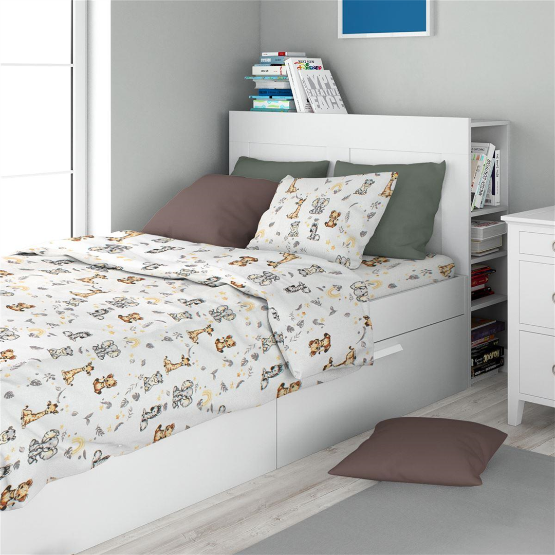 Σεντόνια Εμπριμέ Σετ 3 τεμ kids Savanna 36 160X240 White-Grey 100% Cotton Flannel