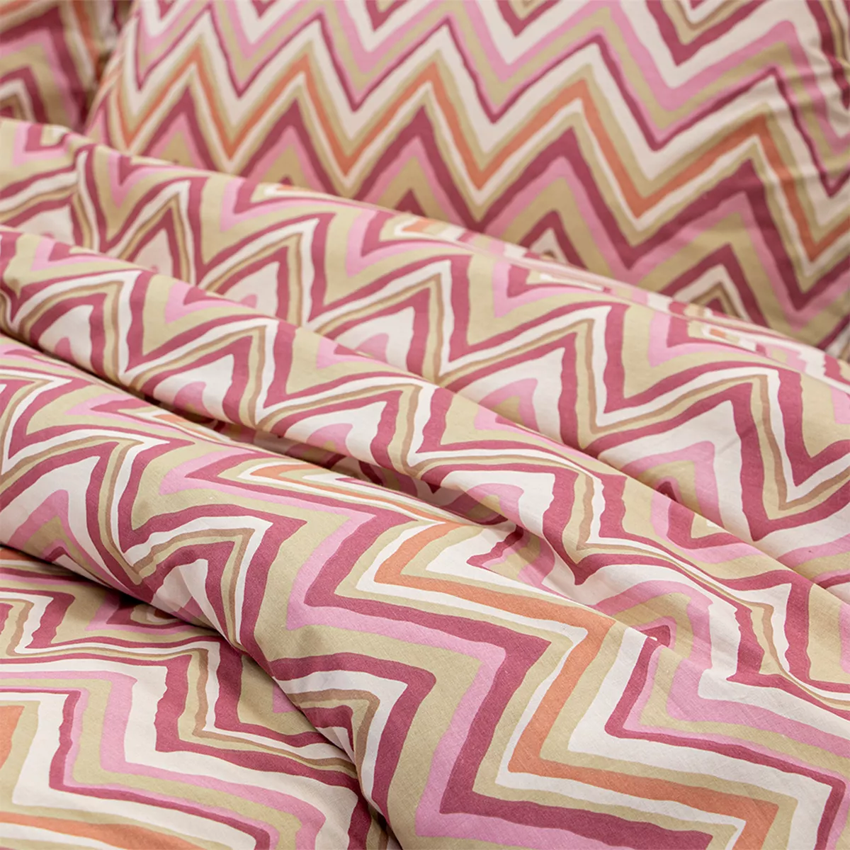 Ανανεώστε την κρεβατοκάμαρά σας με το σετ σεντονιών Flots. Το σετ είναι κατασκευασμένο από βαμβακερό ύφασμα 150 κλωστών, προσφέροντας απαλότητα και ανθεκτικότητα. Διαθέτει γεωμετρικό zig-zag μοτίβο, συνδυάζοντας την ποιότητα με τη μοντέρνα αισθητική για έναν ξεκούραστο ύπνο. Το σετ περιλαμβάνει 2 σεντόνια χωρίς λάστιχο και 2 μαξιλαροθήκες. Προτείνεται πλύσιμο έως τους 40oC και σιδέρωμα σε μέτριες θερμοκρασίες. Ανενδείκνυται η χρήση χλωρίου ή/και λευκαντικού.