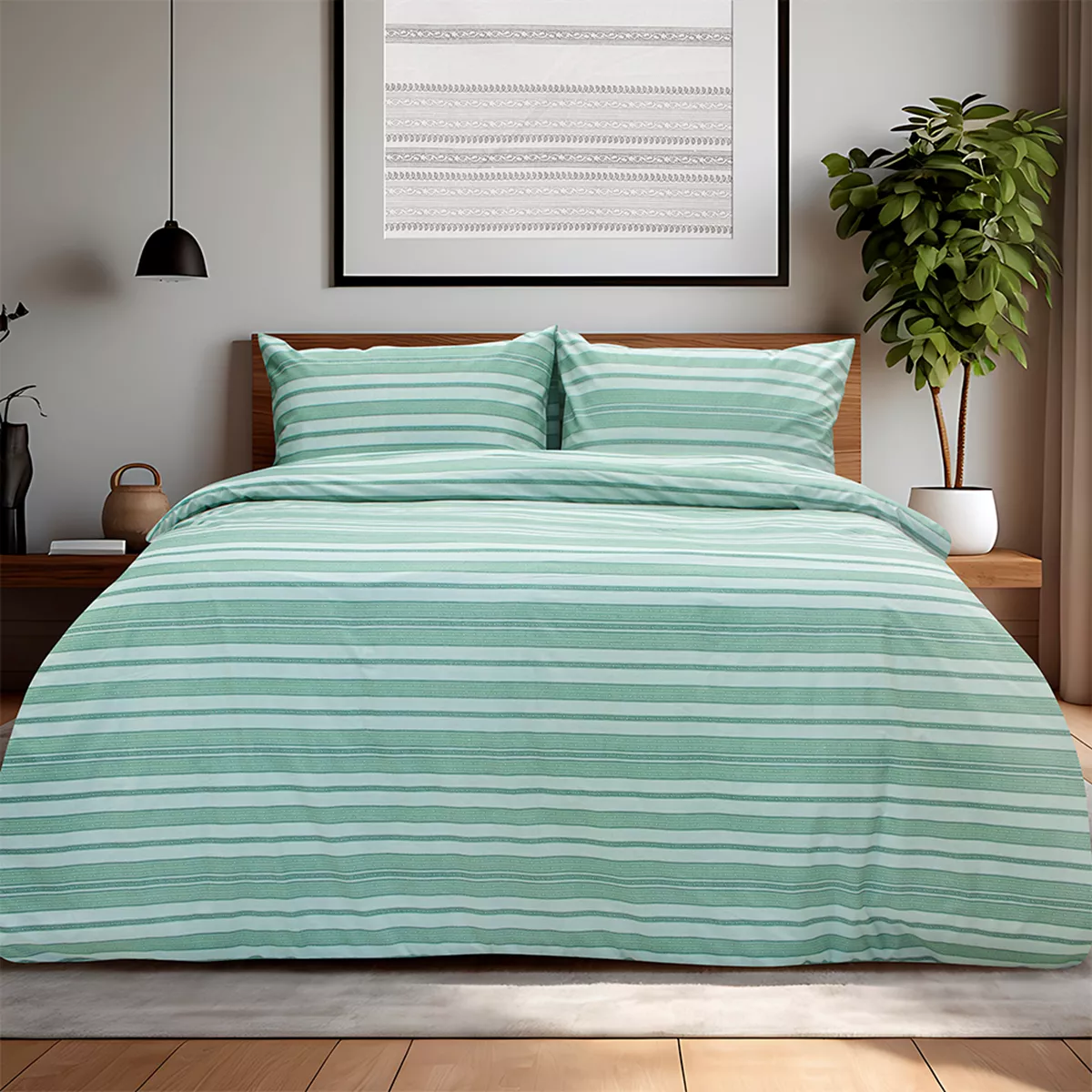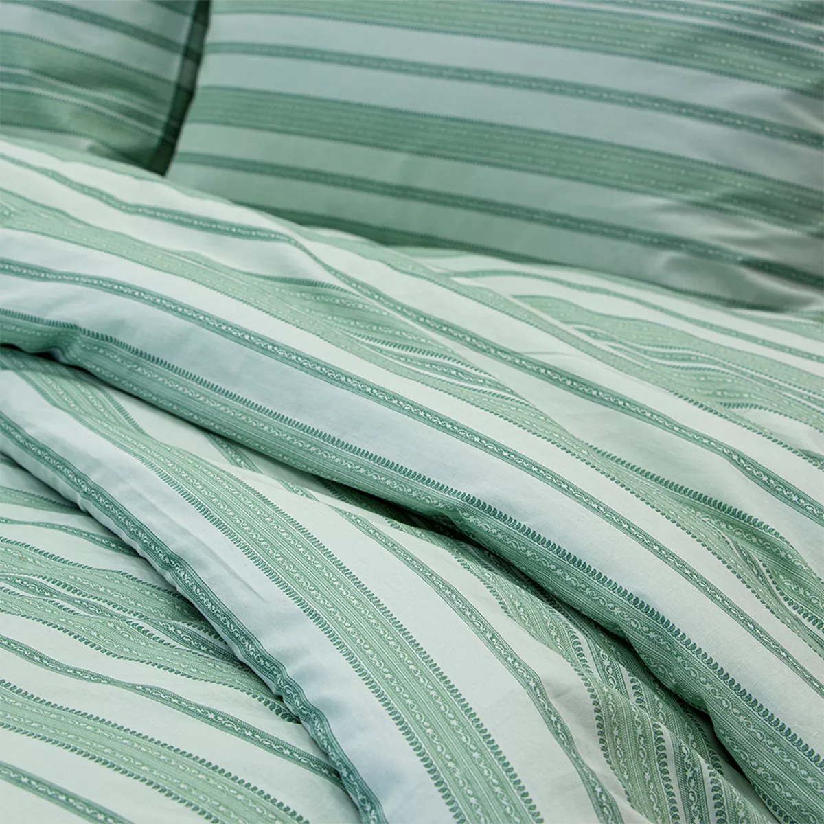 Ανανεώστε την κρεβατοκάμαρά σας με το σετ σεντονιών Carril. Το σετ είναι κατασκευασμένο από βαμβακερό ύφασμα 150 κλωστών, προσφέροντας απαλότητα και ανθεκτικότητα. Διαθέτει κομψό ριγέ σχέδιο, συνδυάζοντας την ποιότητα με τη μοντέρνα αισθητική για έναν ξεκούραστο ύπνο. Το σετ περιλαμβάνει 2 σεντόνια χωρίς λάστιχο και 1 μαξιλαροθήκη. Προτείνεται πλύσιμο έως τους 40oC και σιδέρωμα σε μέτριες θερμοκρασίες. Ανενδείκνυται η χρήση χλωρίου ή/και λευκαντικού.