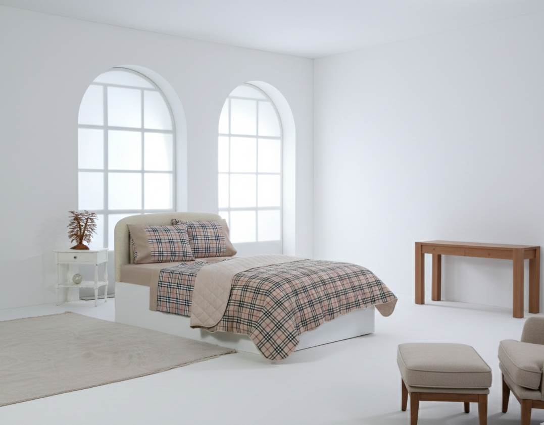 Το κλασικό καρό σχέδιο χαρίζει στυλ και ζεστασιά στον χώρο, ταιριάζοντας εύκολα τόσο σε μοντέρνες όσο και σε πιο παραδοσιακές διακοσμήσεις. Η προσεγμένη καπιτονέ ραφή εξασφαλίζει ομοιόμορφη εφαρμογή και ανθεκτικότητα στη χρήση και στα πλυσίματα.