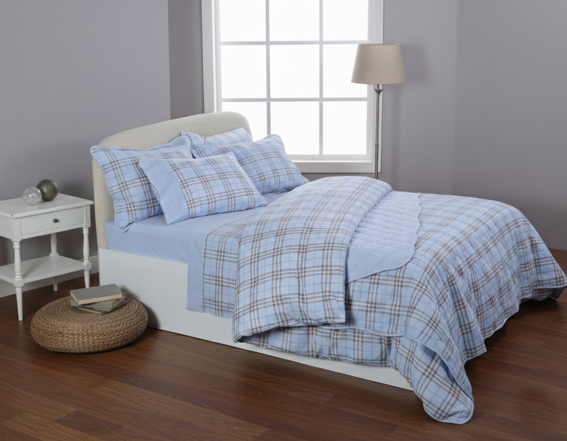 Υπέρδιπλο βαμβακερό κουβερλί (220cm x 240cm) καρρώ σιέλ