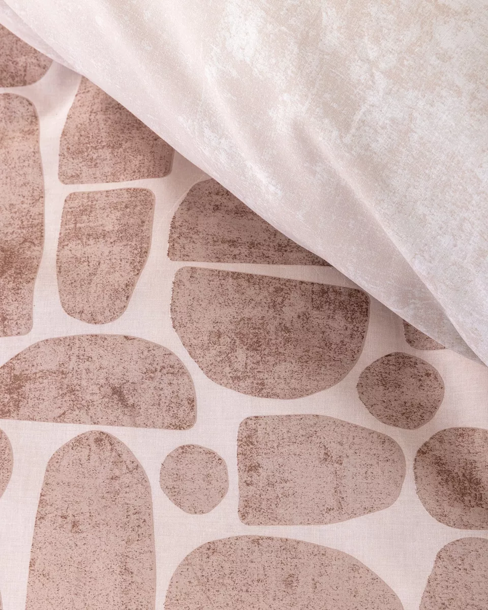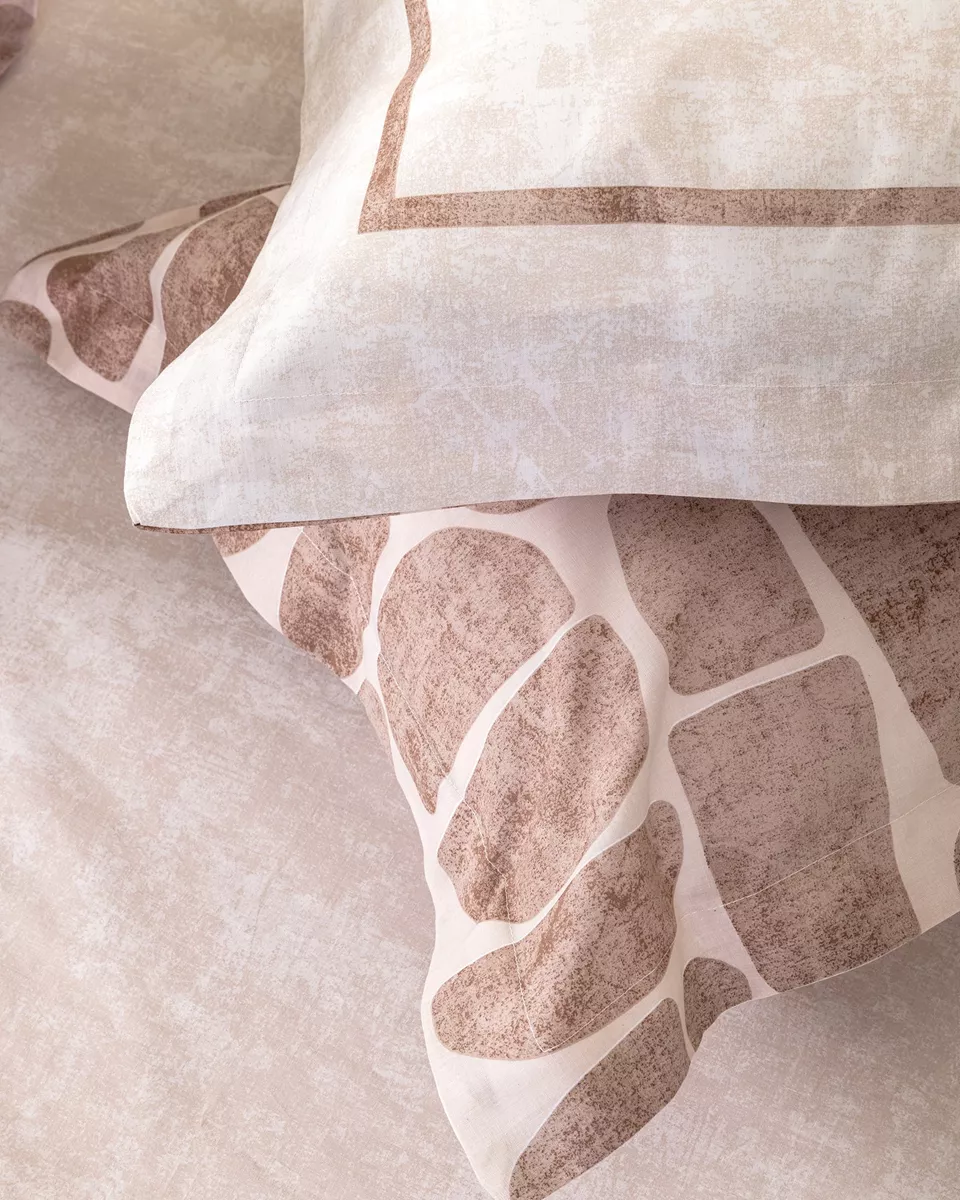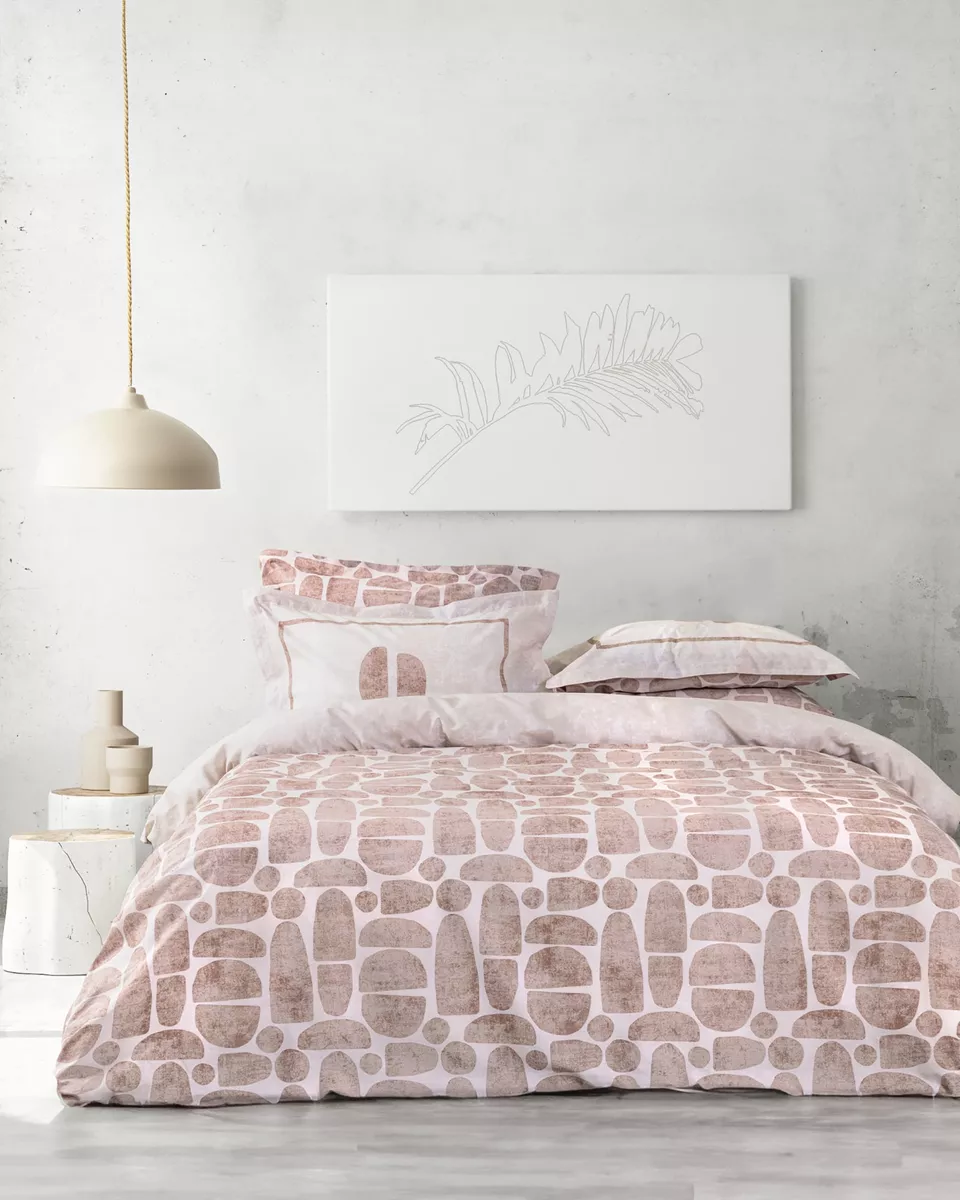 Σετ σεντόνια σε τερακότα - ροζ χρώμα με μοντέρνο σχέδιο. είναι κατασκευασμένα από 100% βαμβάκι 144 κλωστών, που τα καθιστά απαλά, ανθεκτικά και άνετα στη χρήση. οι μαξιλαροθήκες είναι oxford 4 πλευρών δύο όψεων – η μία με το σχέδιο του πανωσέντονου και η άλλη σε στις ίδιες αποχρώσεις με πάνελ διακριτικό μοτίβο. ιδανικό για να ανανεώσει το υπνοδωμάτιο με στυλ και άνεση.
