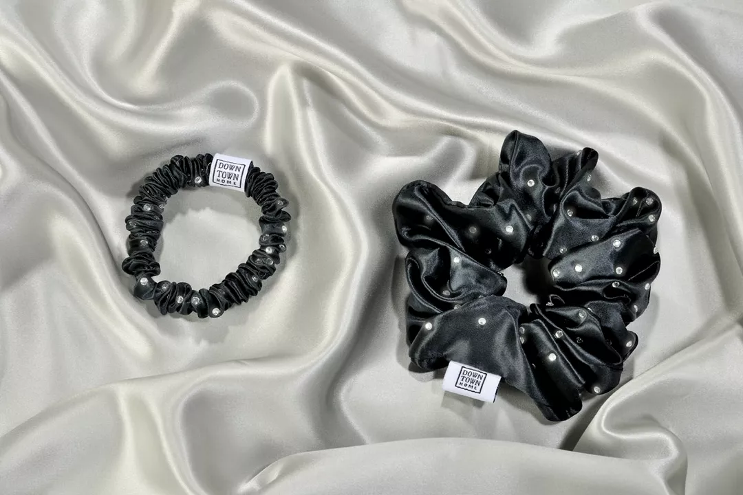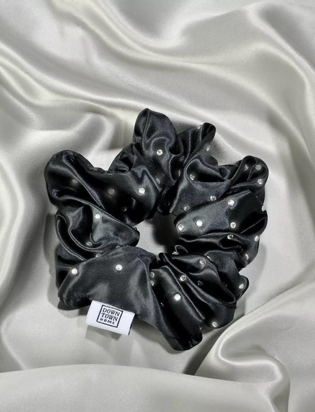 Λαστιχάκι μαλλιών 100% μετάξι με λαμπερά κρύσταλα Black