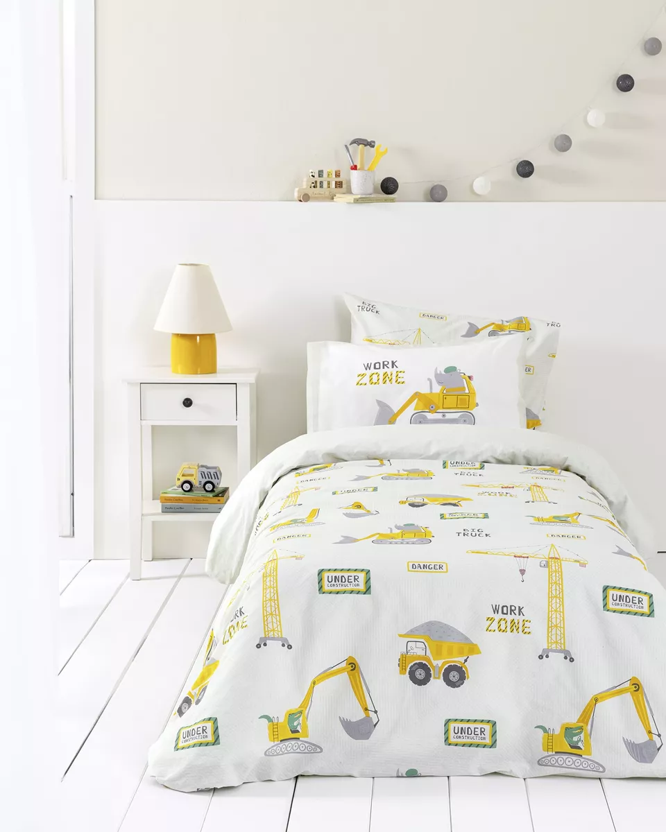 Σετ παιδικές μαξιλαροθήκες από 100% βαμβάκι 144 κλωστών, με απαλή υφή και ανθεκτικότητα για καθημερινή χρήση. διαθέτουν λευκή/γκρι απόχρωση και κίτρινες πινελίες σε διασκεδαστικό πάνελ σχέδιο, ιδανικό για παιδικό δωμάτιο. η φυσική τους σύνθεση είναι φιλική προς το δέρμα, προσφέροντας άνεση και ευχάριστη αίσθηση στον ύπνο.