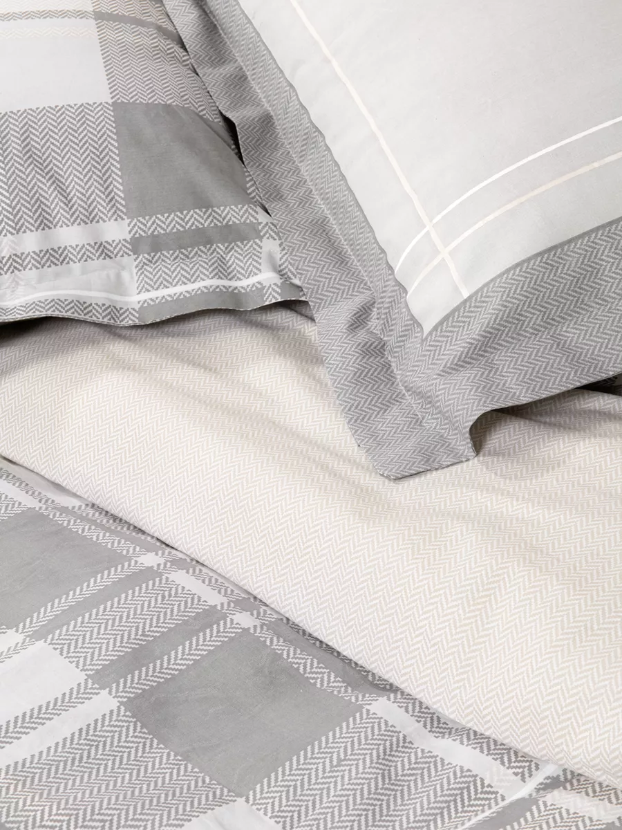 Οι βαμβακερές μαξιλαροθήκες arthur είναι η επιτομή της μίνιμαλ και σύγχρονης αισθητικής. Ο λιτός, γεωμετρικός σχεδιασμός τους προσφέρει μια αίσθηση τάξης και κομψότητας, κάνοντάς τις ιδανικές για κάθε μοντέρνο υπνοδωμάτιο. Η πάνω τους όψη έχει ένα πάνελ καθαρό και λιτό γεωμετρικό σχέδιο. Η δεύτερη όψη τους έχει καρό μοτίβο με επίσης καθαρές γραμμές που τονίζουν την καθαρότητα του σχεδίου. Οι μαξιλαροθήκες έχουν τελείωμα oxford με ένα φαρδύ, διακοσμητικό περίγραμμα, που τους δίνει μια πιο πολυτελή και "γεμάτη" όψη. Η χρωματική τους παλέτα κινείται σε ήπιους και ουδέτερους τόνους του γκρι και του μπεζ, τονίζοντας την διαχρονικότητα του σχεδίου.