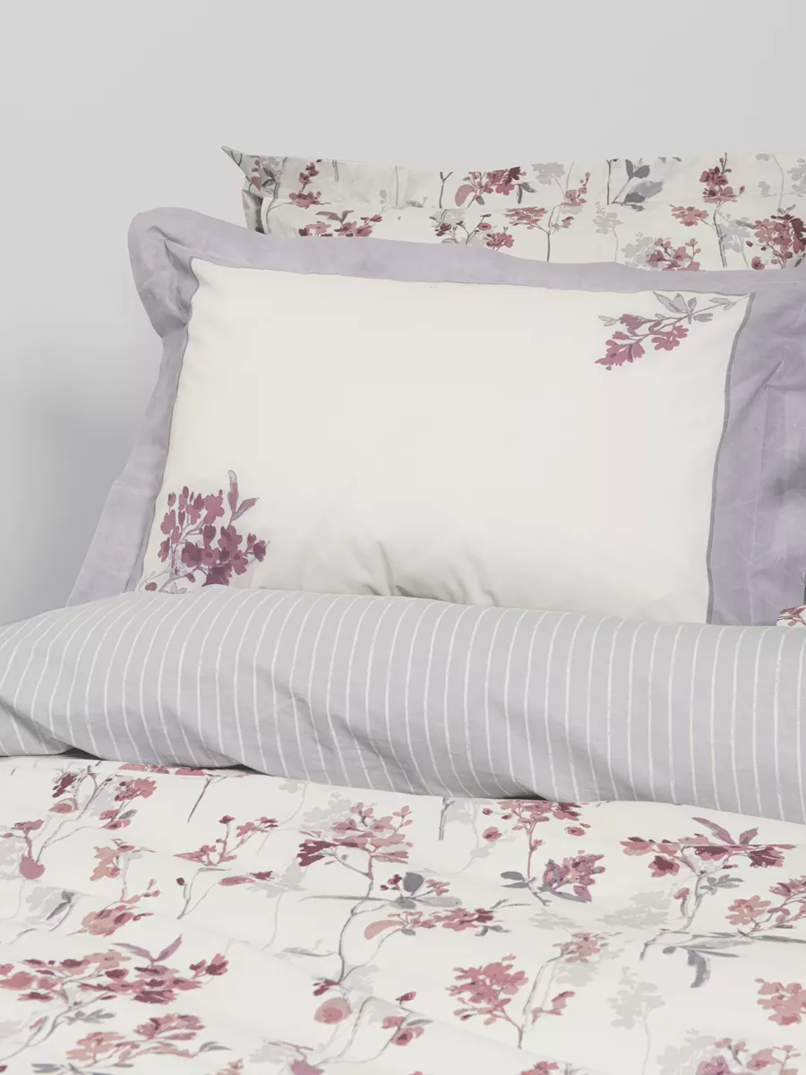 Οι βαμβακερές μαξιλαροθήκες tessa αποτελούν ένα κομψό και ταυτόχρονα ρομαντικό αξεσουάρ για κάθε κρεβάτι, προσθέτοντας μια νότα φρεσκάδας και διακριτικής ομορφιάς. Το τυπωτό πάνελ σχέδιό τους είναι απλό αλλά εντυπωσιακό. Αποτελείται από διακριτικά κλαδιά με λουλούδια, που κοσμούν τις δύο διαμετρικά αντίθετες γωνίες τους, ενώ πλαισιώνονται από μια περιμετρική μονόχρωμη κορνίζα. Οι μαξιλαροθήκες είναι τύπου oxford 4 πλευρών, που σημαίνει ότι διαθέτουν ένα διακοσμητικό περίγραμμα σε όλες τις πλευρές τους. Αυτό το χαρακτηριστικό της δίνει ένα πιο γεμάτο σχήμα και μια πιο κομψή εμφάνιση, αναδεικνύοντας το κρεβάτι σας.