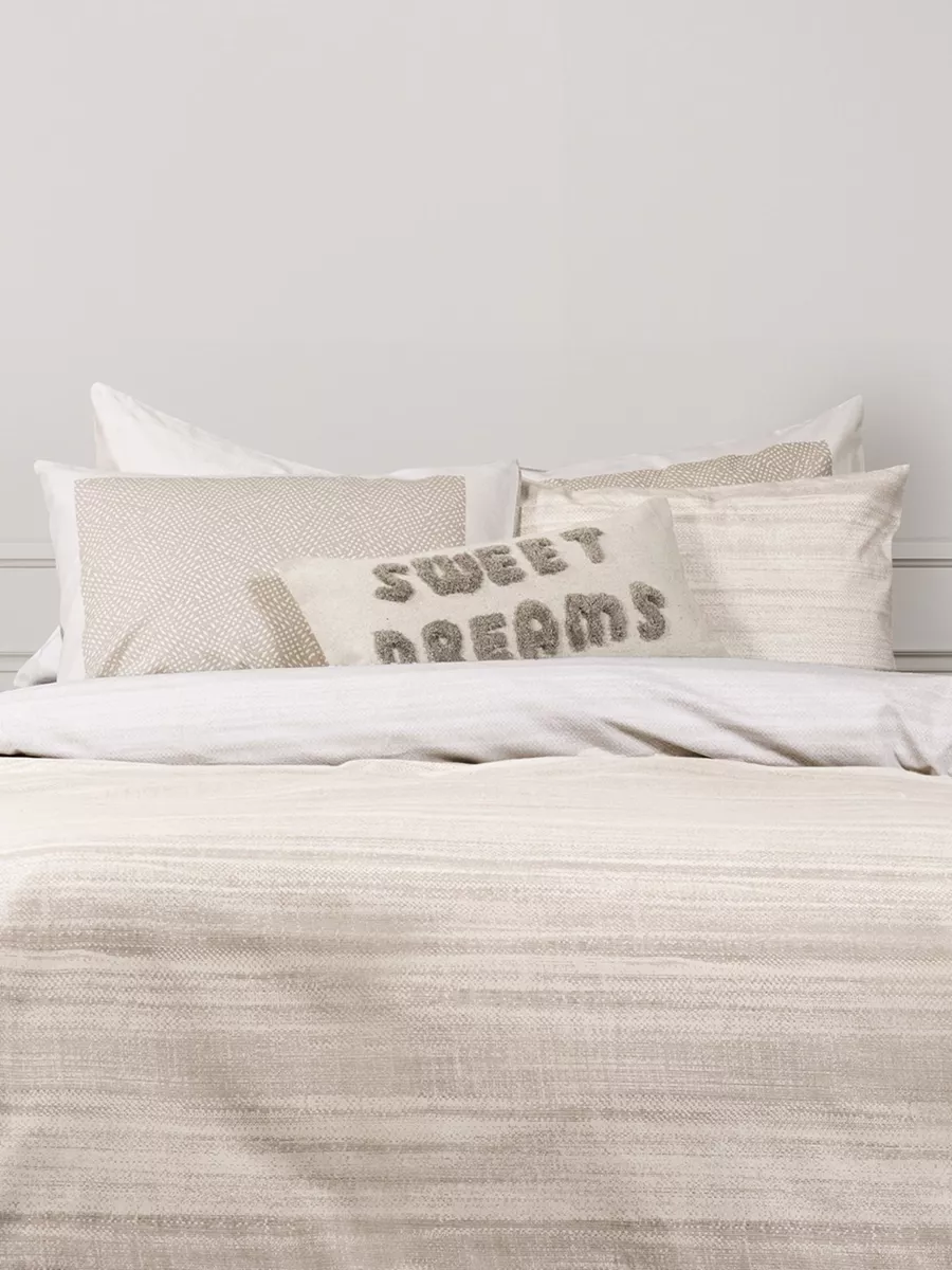 Οι βαμβακερές φανελένιες μαξιλαροθήκες venity έχουν λιτό γεωμετρικό σχεδιασμό, που προσφέρει μια αίσθηση τάξης και κομψότητας, κάνοντάς τις ιδανικές για κάθε υπνοδωμάτιο. Η πάνω τους όψη έχει ένα λιτό πάνελ σχέδιο, που φιλοξενεί στο κέντρο ένα minimal γεωμετρικό μοτίβο, που προσδίδει μια αίσθηση μιας extra υφής. Αυτή η λεπτομέρεια δίνει στο προϊόν μια αίσθηση φυσικότητας και βάθους. Η δεύτερη όψη τους έχει ακαθόριστο ριγέ μοτίβο στα χρώματα της άμμου. Η συνολική αρμονία των αποχρώσεων του μπεζ, τονίζει την διαχρονικότητα του σχεδίουκαι δημιουργεί μια ήρεμη και φιλόξενη ατμόσφαιρα.