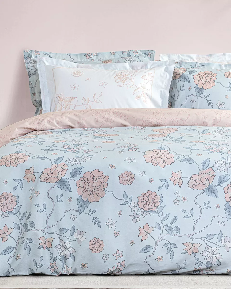 Σετ μαξιλαροθήκες σε σιέλ - ροζ χρώμα με φλοράλ σχέδιο. είναι κατασκευασμένες από 100% βαμβάκι 144 κλωστών, που τις καθιστά απαλές, ανθεκτικές και άνετες στη χρήση. είναι oxford 4 πλευρών δύο όψεων – η μία με το σχέδιο του πανωσέντονου και η άλλη στις ίδιες αποχρώσεις με πάνελ διακριτικό μοτίβο. ιδανικό για να ανανεώσει το υπνοδωμάτιο με στυλ και άνεση.