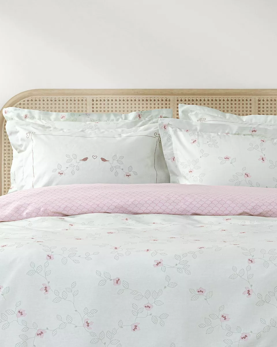 Σετ μαξιλαροθήκες σε μέντα - ροζ χρώμα με φλοράλ σχέδιο. είναι κατασκευασμένες από 100% βαμβάκι 144 κλωστών, που τις καθιστά απαλές, ανθεκτικές και άνετες στη χρήση. είναι oxford 4 πλευρών δύο όψεων – η μία με το σχέδιο του πανωσέντονου και η άλλη στις ίδιες αποχρώσεις με πάνελ διακριτικό μοτίβο. ιδανικό για να ανανεώσει το υπνοδωμάτιο με στυλ και άνεση.