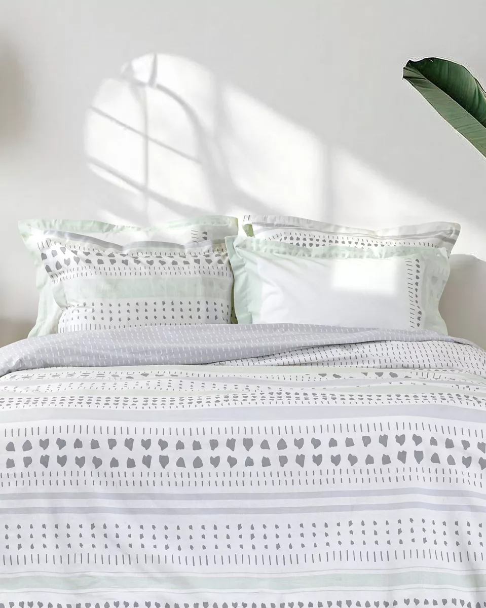 Σετ μαξιλαροθήκες σε γκρι - μέντα χρώμα με μοντέρνο σχέδιο. είναι κατασκευασμένες από 100% βαμβάκι 144 κλωστών, που τις καθιστά απαλές, ανθεκτικές και άνετες στη χρήση. είναι oxford 4 πλευρών δύο όψεων – η μία με το σχέδιο του πανωσέντονου και η άλλη στις ίδιες αποχρώσεις με πάνελ διακριτικό μοτίβο. ιδανικό για να ανανεώσει το υπνοδωμάτιο με στυλ και άνεση.