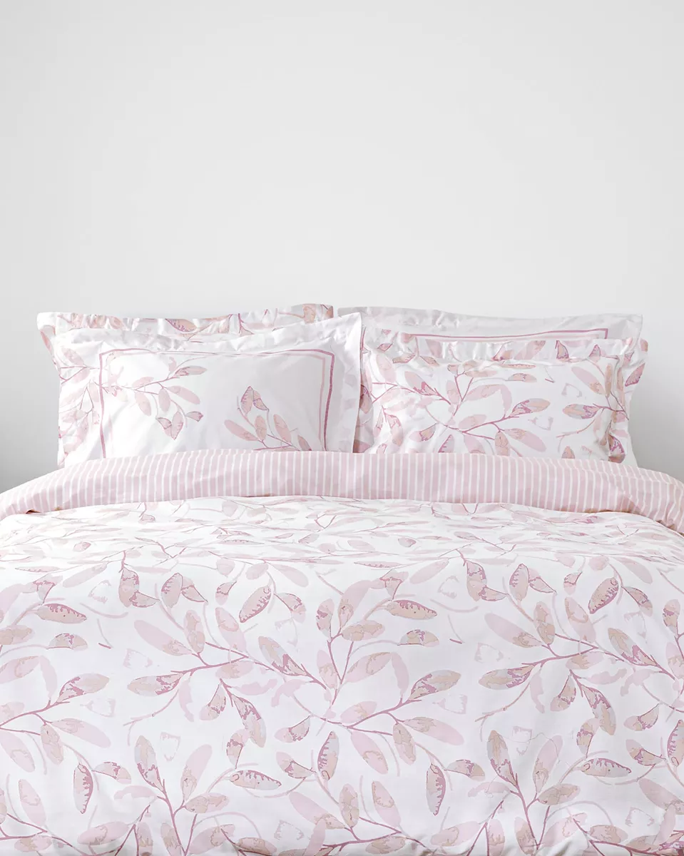 Σετ μαξιλαροθήκες σε ροζ χρώμα με φλοράλ σχέδιο. είναι κατασκευασμένες από 100% βαμβάκι 144 κλωστών, που τις καθιστά απαλές, ανθεκτικές και άνετες στη χρήση. είναι oxford 4 πλευρών δύο όψεων – η μία με το σχέδιο του πανωσέντονου και η άλλη στις ίδιες αποχρώσεις με πάνελ διακριτικό μοτίβο. ιδανικό για να ανανεώσει το υπνοδωμάτιο με στυλ και άνεση.