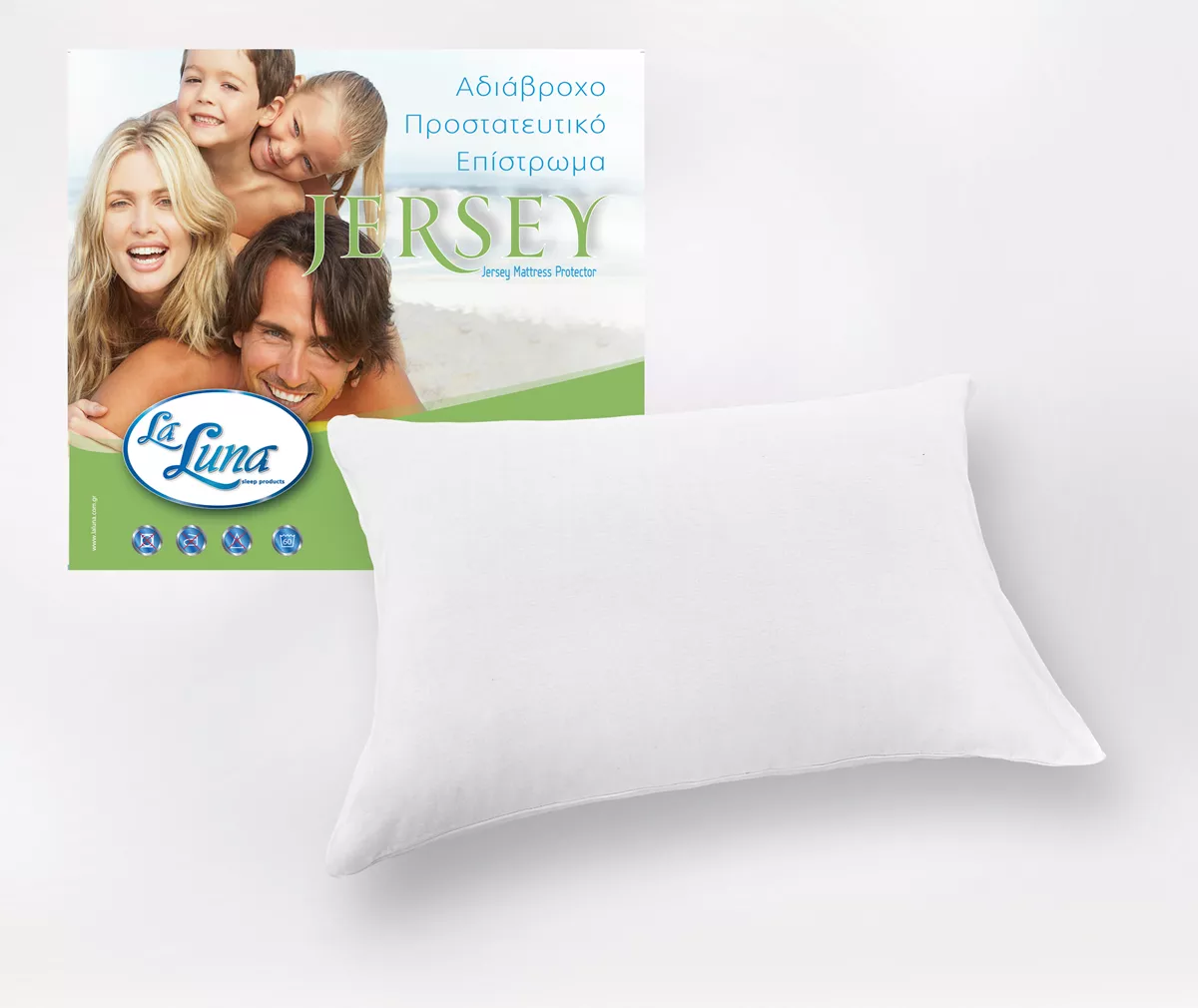 Μαξιλαροθήκες Αδιάβροχες Jersay 50x70. 100% Cotton μακό jersey. Εσωτερική γέμιση: