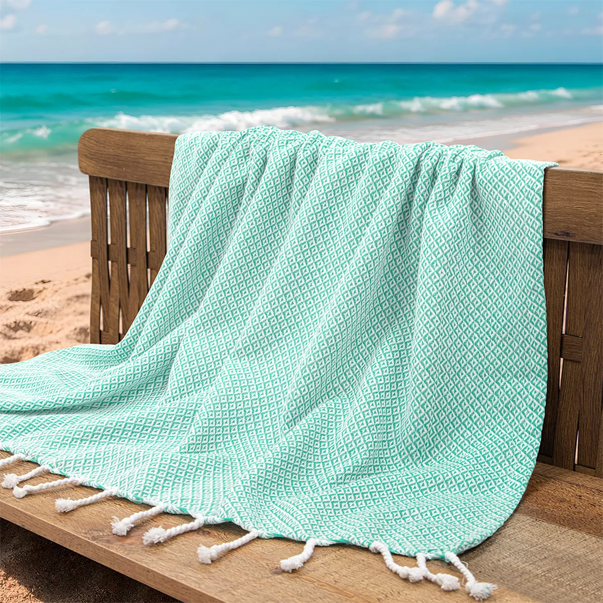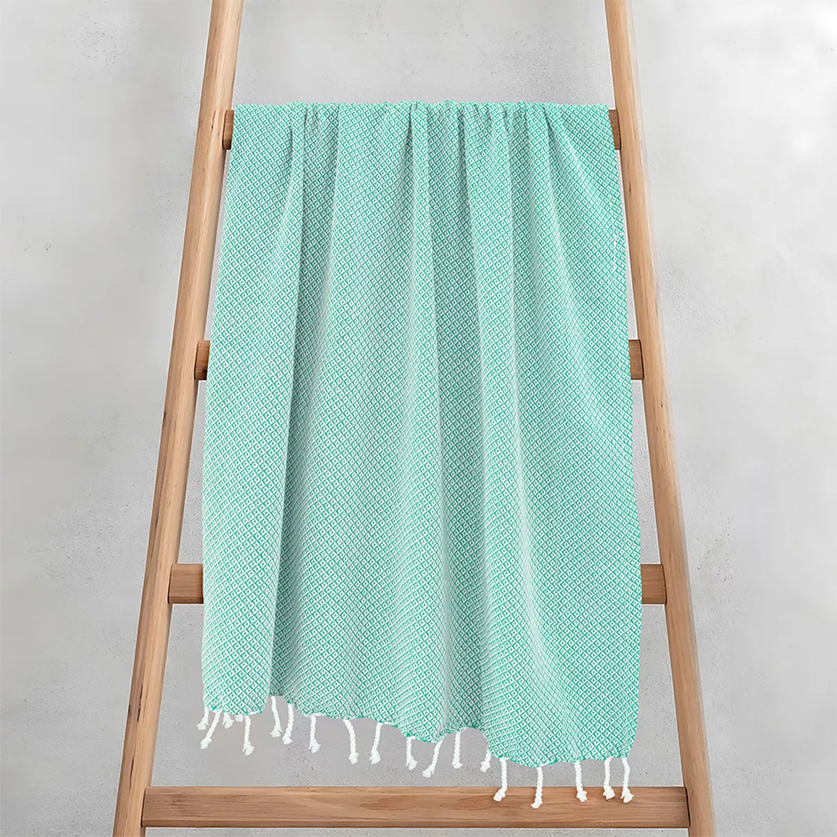 Πετσέτα pestemal σε κομψή απόχρωση με διακριτικό γεωμετρικό μοτίβο, που συνδυάζει μοντέρνα αισθητική με παραδοσιακό χαρακτήρα. Το ύφασμά της είναι ανάλαφρο και ευχάριστο στην αφή, ιδανικό για στιγμές χαλάρωσης στην παραλία, την πισίνα ή το σπίτι. Το λεπτό σχέδιο δημιουργεί μια διακριτική υφή που προσθέτει ενδιαφέρον χωρίς να βαραίνει το σύνολο, ενώ τα λευκά κρόσσια στο τελείωμα ολοκληρώνουν την εμφάνιση με μία αυθεντική πινελιά. Πρακτική και εύκολη στη μεταφορά, στεγνώνει γρήγορα και αποτελεί εξαιρετική επιλογή για καλοκαιρινές αποδράσεις και καθημερινή χρήση. Προμηθευτής: Lino Home Επωνυμία: Aureva Σύνθεση: 100% Βαμβάκι Χρώμα: Μέντα Διαστάσεις: 90x180 Πιστοποίση OEKOTEX *Τα χρώματα ενδέχεται να υπόκεινται σε μικρές διαφοροποιήσεις με τις ρυθμίσεις της οθόνης σας.
