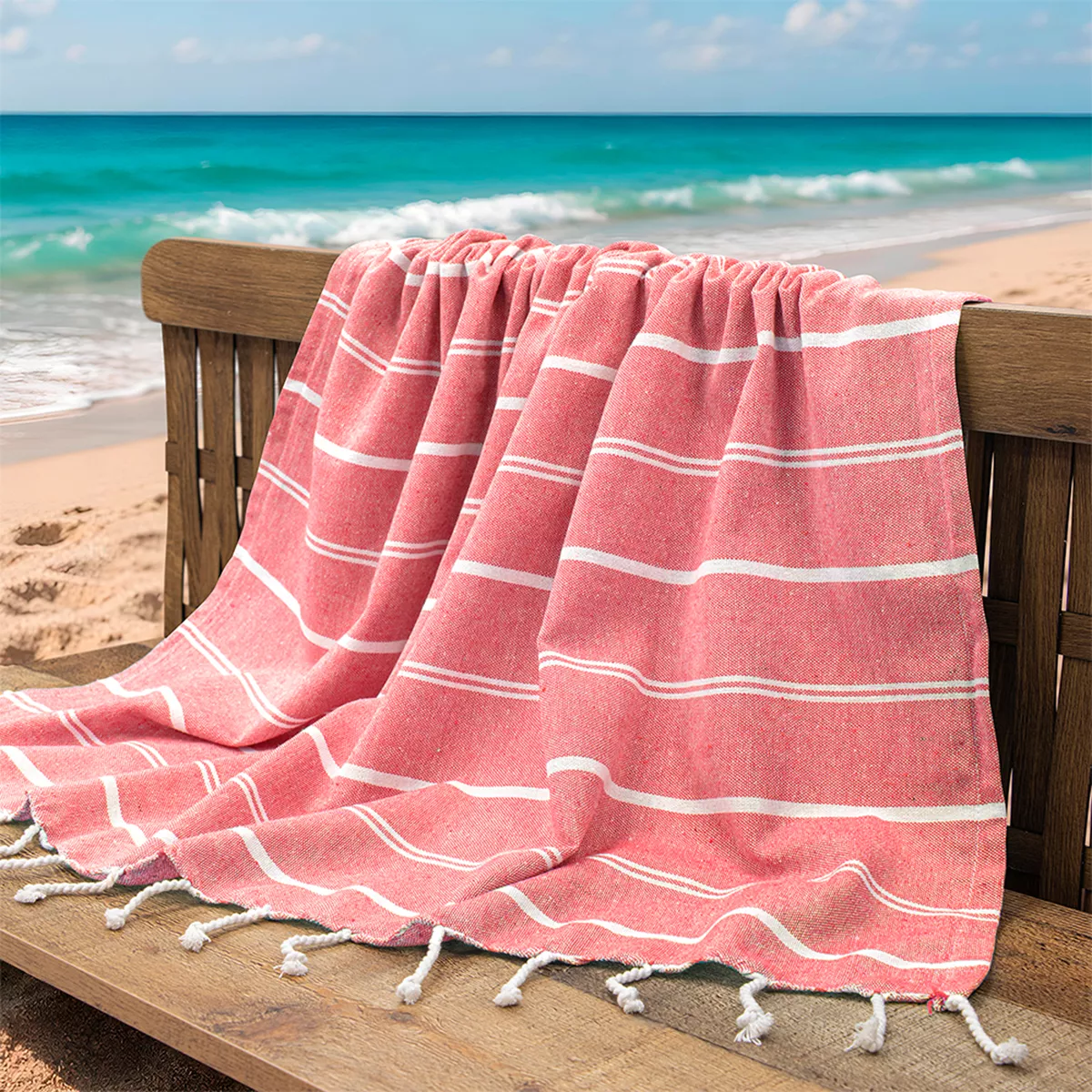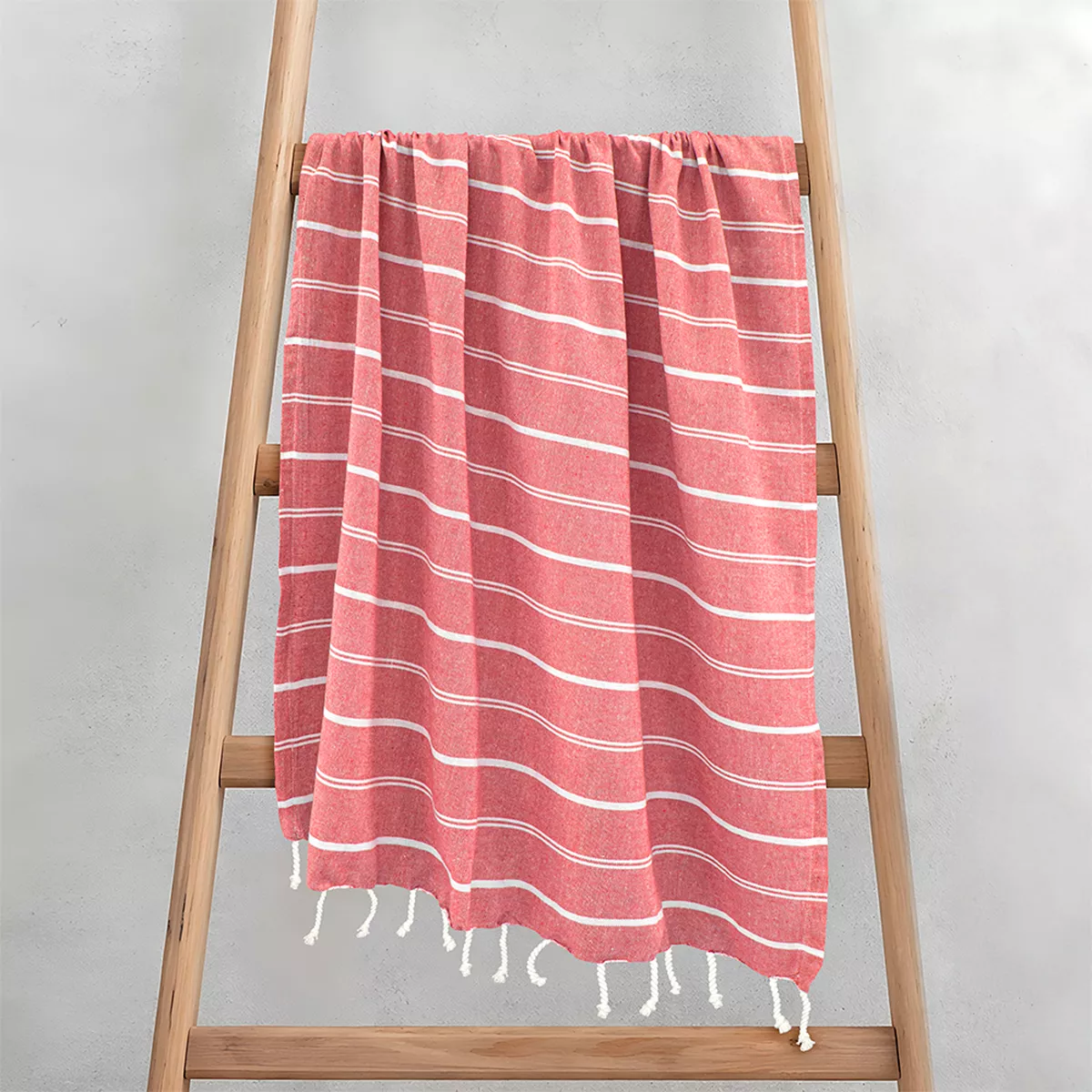 Πετσέτα pestemal σε φρέσκια απόχρωση με διακριτικές λευκές ρίγες, που αποπνέει καλοκαιρινή κομψότητα και απλότητα. Το ύφασμά της φαίνεται ελαφρύ και απαλό, ιδανικό για χρήση στην παραλία, την πισίνα ή ακόμα και στο μπάνιο. Οι λευκές λεπτομέρειες και τα μικρά κρόσσια στο τελείωμα προσθέτουν μια παραδοσιακή πινελιά, ενώ ο μίνιμαλ σχεδιασμός την καθιστά εύκολη στον συνδυασμό. Απορροφητική και ταυτόχρονα γρήγορη στο στέγνωμα, αποτελεί πρακτική και κομψή επιλογή για καθημερινή χρήση ή ταξίδια. Προτείνεται πλύσιμο στους 30oC. Προμηθευτής: Lino Home Επωνυμία: Veliu Σύνθεση: 100% Βαμβάκι Χρώμα: Κοραλί Διαστάσεις: 90x180 Πιστοποίηση OEKOTEX *Τα χρώματα ενδέχεται να υπόκεινται σε μικρές διαφοροποιήσεις.