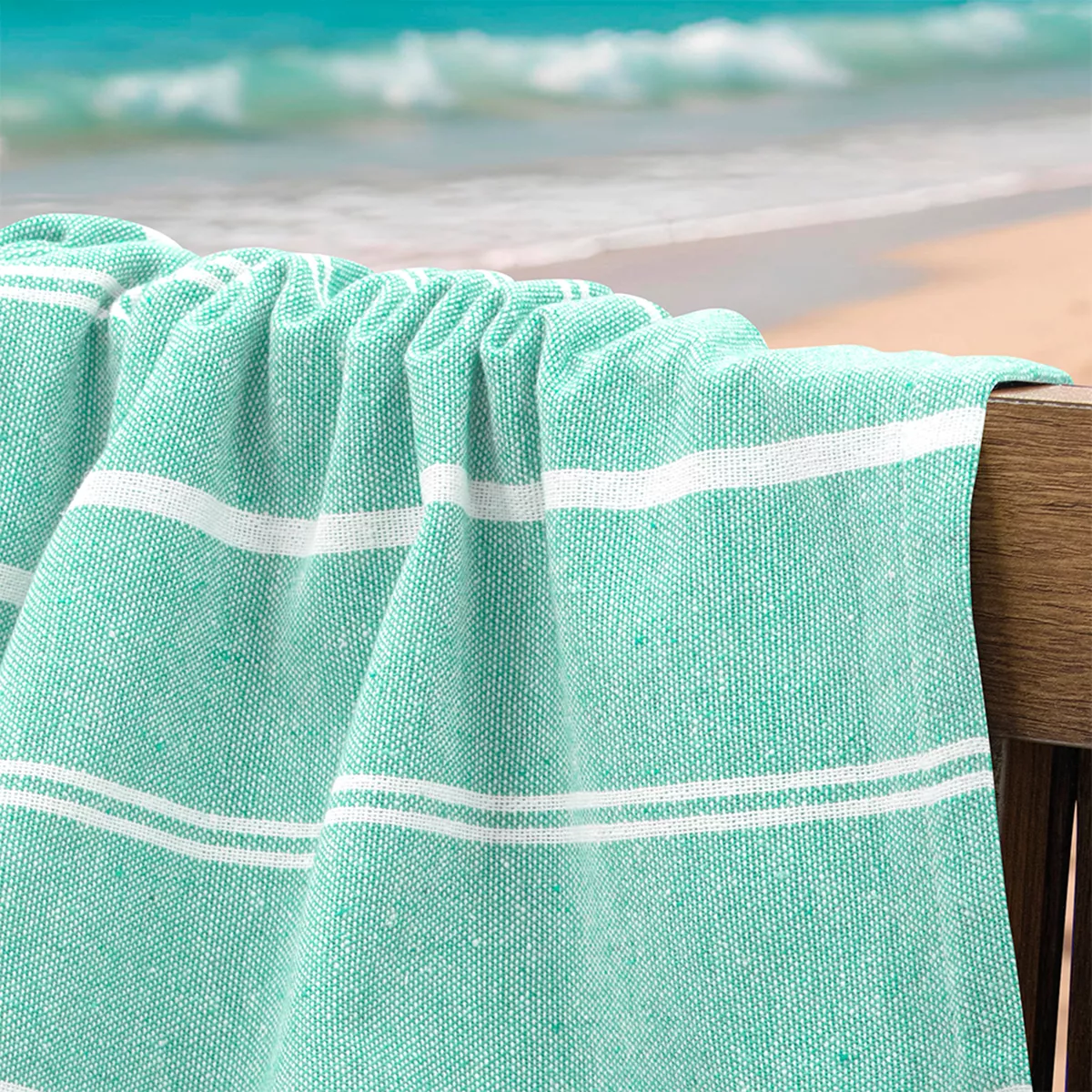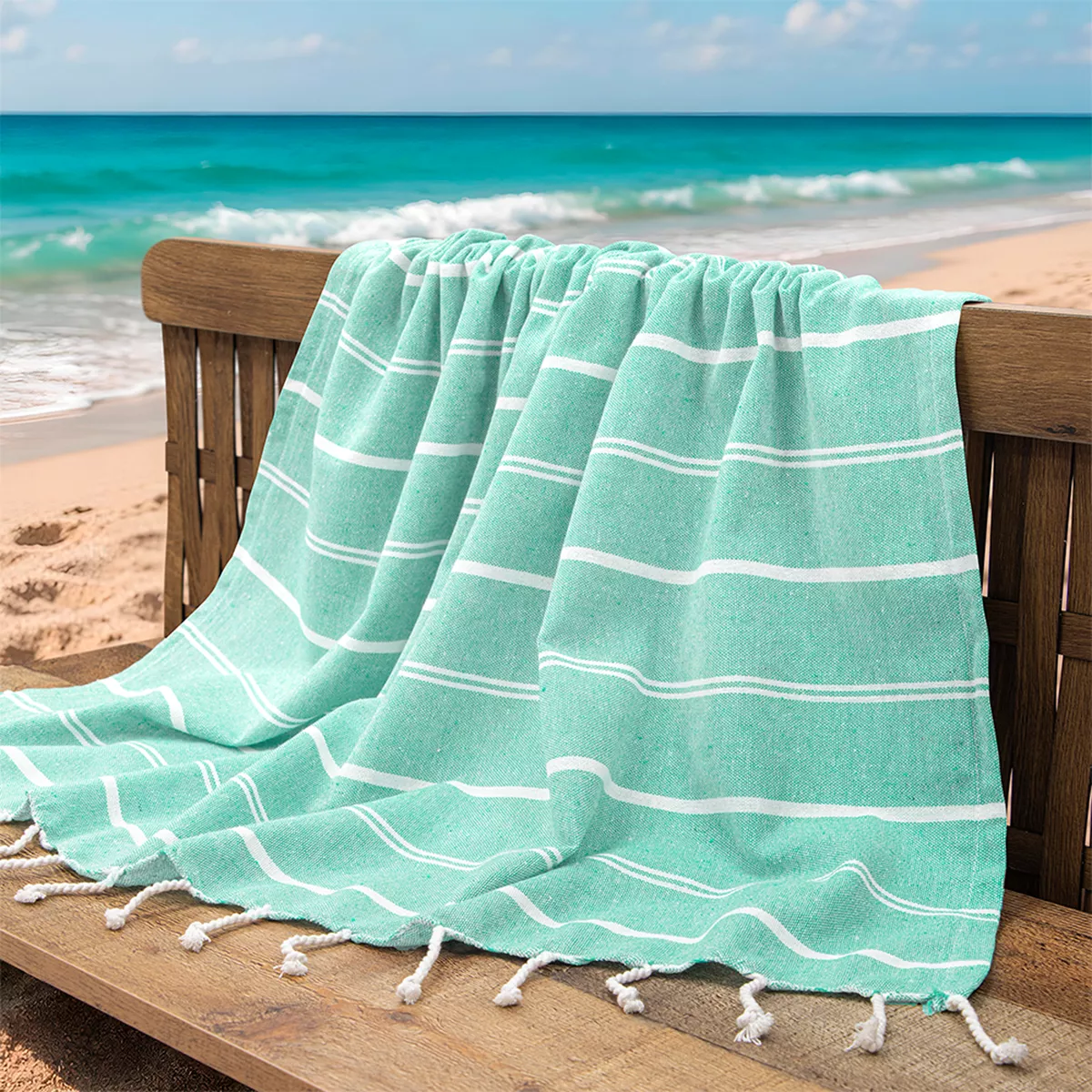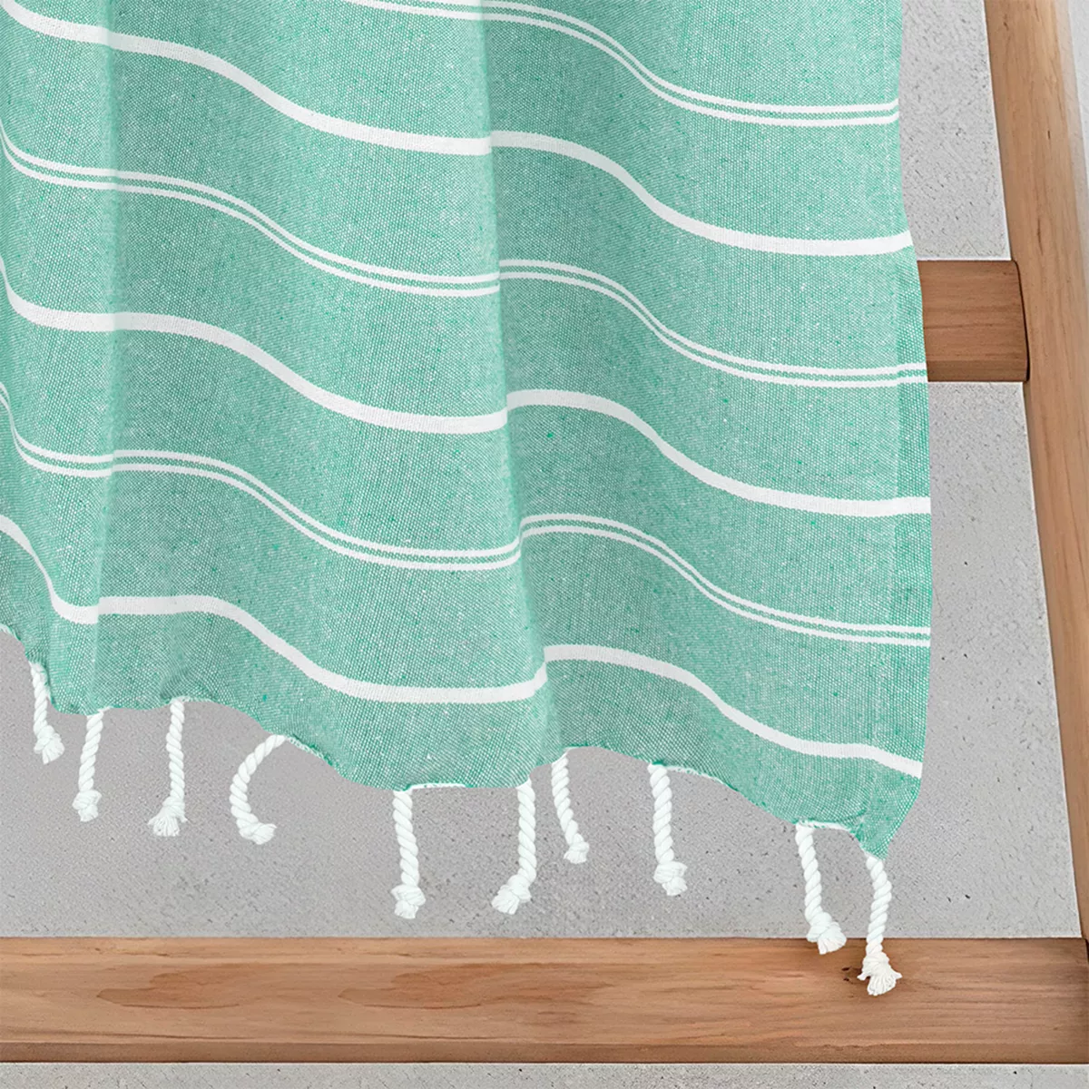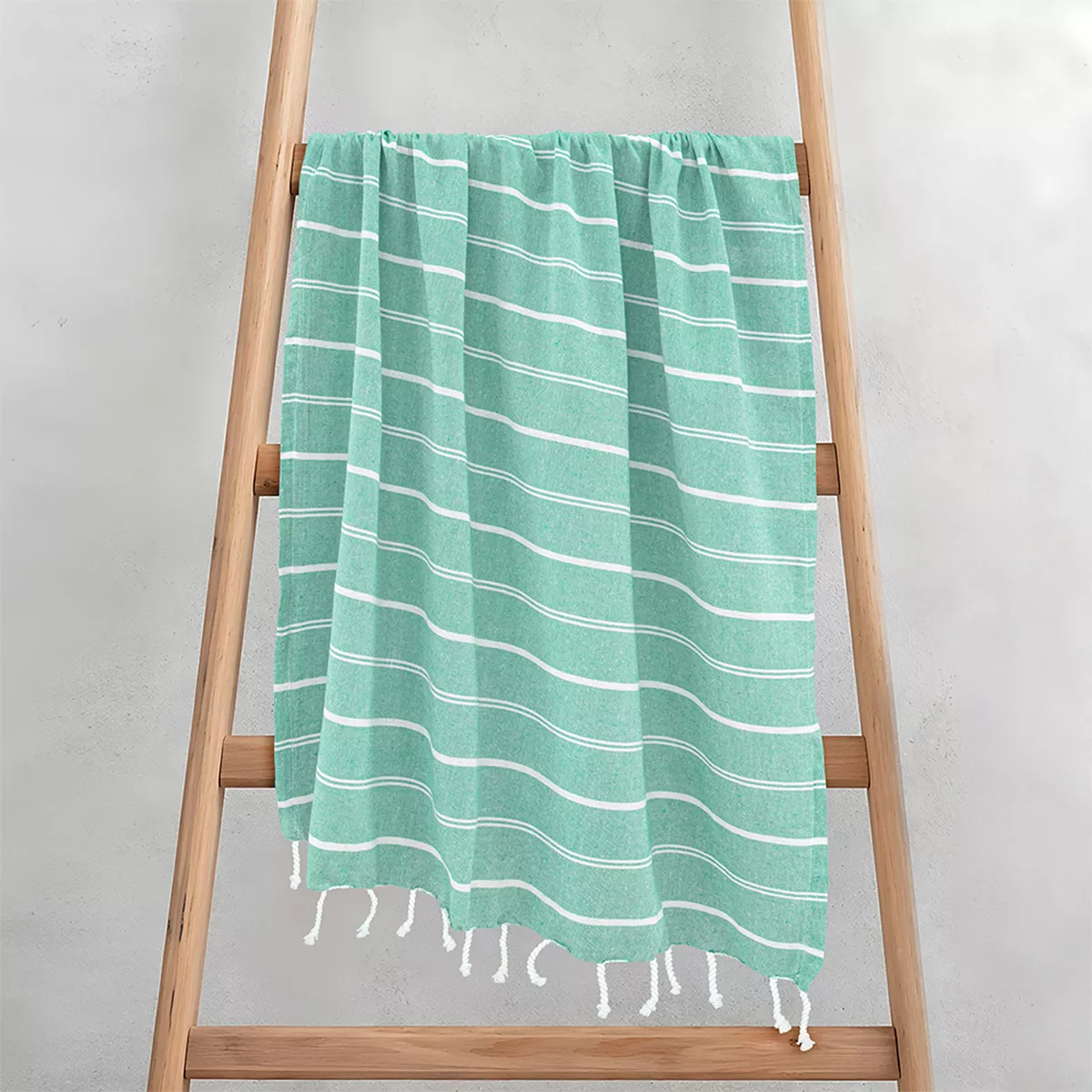 Πετσέτα pestemal σε δροσερή απόχρωση με διακριτικές λευκές ρίγες, που αποπνέει καλοκαιρινή κομψότητα και απλότητα. Το ύφασμά της φαίνεται ελαφρύ και απαλό, ιδανικό για χρήση στην παραλία, την πισίνα ή ακόμα και στο μπάνιο. Οι λευκές λεπτομέρειες και τα μικρά κρόσσια στο τελείωμα προσθέτουν μια παραδοσιακή πινελιά, ενώ ο μίνιμαλ σχεδιασμός την καθιστά εύκολη στον συνδυασμό. Απορροφητική και ταυτόχρονα γρήγορη στο στέγνωμα, αποτελεί πρακτική και κομψή επιλογή για καθημερινή χρήση ή ταξίδια. Προτείνεται πλύσιμο στους 30oC. Προμηθευτής: Lino Home Επωνυμία: Veliu Σύνθεση: 100% Βαμβάκι Χρώμα: Μέντα Διαστάσεις: 90x180 Πιστοποίηση OEKOTEX *Τα χρώματα ενδέχεται να υπόκεινται σε μικρές διαφοροποιήσεις.