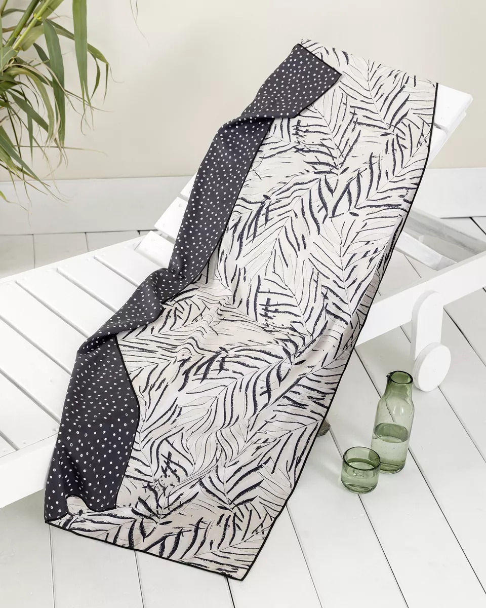 Πετσέτα θαλάσσης δύο όψεων από 100% microfiber 200 γρ./μ², εξαιρετικά ελαφριά και απορροφητική, ιδανική για την παραλία, την πισίνα ή τα ταξίδια. διαθέτει επεξεργασία quick dry για γρήγορο στέγνωμα, ενώ η πυκνή ύφανση από εξαιρετικά λεπτές ίνες προσφέρει πολύ απαλή και μαλακή υφή. είναι ανθεκτική στη συχνή χρήση και στα πλυσίματα και καθαρίζεται εύκολα χωρίς ιδιαίτερη φροντίδα. πρακτική και εύχρηστη, διαθέτει ελαστική θηλιά για εύκολο δίπλωμα και μεταφορά, αποτελώντας ιδανική επιλογή για κάθε στιγμή χαλάρωσης.