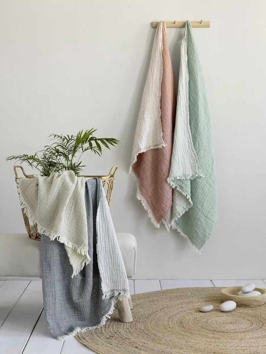 Η βαμβακερή πετσέτα θαλάσσης - παρεό sunshine light gray έχει υπέροχο χρώμα σε αποχρώσεις του γκρι και μπορεί να χρησιμοποιηθεί και από τις δύο της πλευρές. Έχει γκοφρέ ύφανση και εξαιρετικά μαλακή υφή. Τα διακριτικά κρόσσια στο φινίρισμά της ταιριάζουν άψογα με την φυσική της υφή και το στιλ της. Μια διαχρονική πετσέτα που θα σας συντροφεύσει στην παραλία και στις καλοκαιρινές σας αποδράσεις για μία κομψή και στυλάτη εμφάνιση.