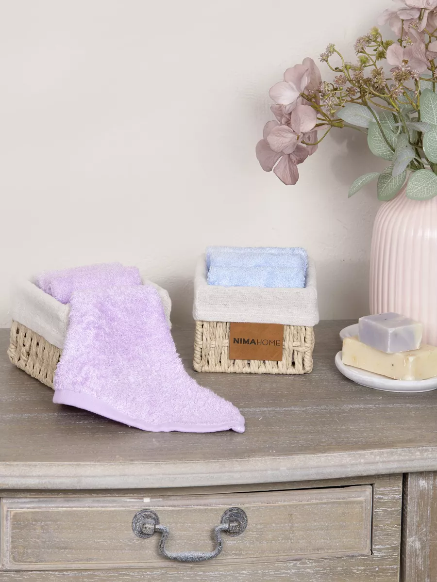 Καλαθάκι με σετ λαβέτες κατασκευασμένα από ίνες bamboo. Το bamboo είναι γνωστό για την εξαιρετική του απαλότητα, που θυμίζει μετάξι, καθώς και για τις φυσικές του αντιμικροβιακές ιδιότητες. Τα πετσετάκια είναι απίστευτα απορροφητικά και στεγνώνουν γρήγορα, κάνοντάς τα ιδανικά για την καθημερινή υγιεινή του προσώπου και των χεριών. Η μοναδική σύνθεση των λαβέτων προσφέρει απαλότητα, απορροφητικότητα και ανθεκτικότητα στο χρόνο, καθιστώντας τις ιδανικές για την καθημερινή χρήση.