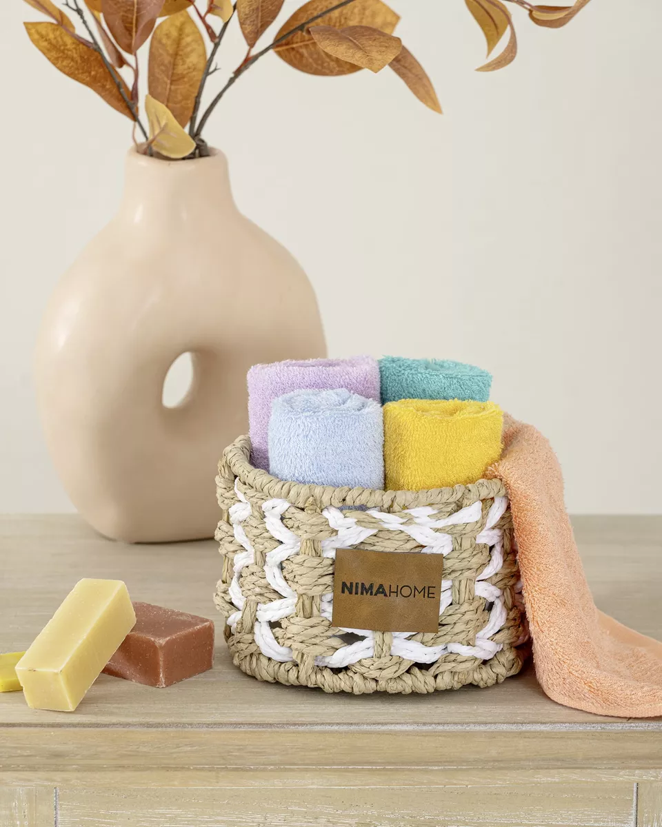 Σετ λαβετών από 100% bamboo, εξαιρετικά απαλές, απορροφητικές και με φυσικές αντιμικροβιακές ιδιότητες. είναι ιδανικές για καθημερινή χρήση σε πρόσωπο και χέρια. συνοδεύονται από κομψό πλεκτό σχοινένιο καλαθάκι που προσφέρει πρακτική οργάνωση και φυσική αισθητική στο μπάνιο σας.