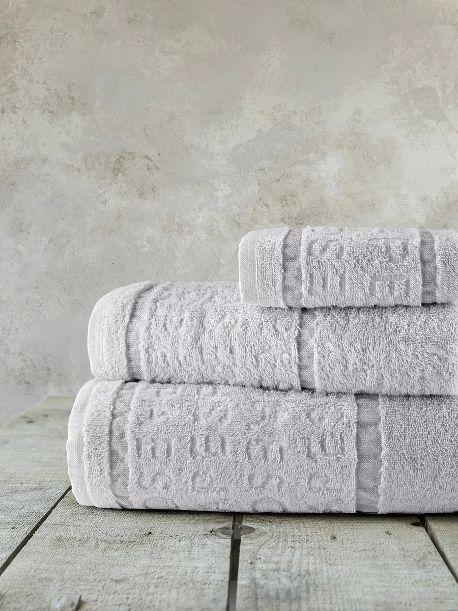 Σετ Πετσέτες jacquard με σύνθεση από 100% βαμβάκι βάρους 480 gsm. Έχουν πλούσια, αφράτη υφή και εξαιρετικά απαλή αίσθηση. Χάρη στη βαμβακερή τους σύνθεση αναπνέουν φυσικά, είναι πολύ απορροφητικές, υποαλλεργικές και φιλικές προς το δέρμα. Προσφέρουν άνετο στέγνωμα μετά το ντους ή το μπάνιο. Είναι ιδανικές για καθημερινή χρήση και έχουν μεγάλη αντοχή στον χρόνο καθώς διατηρούν το σχήμα και το χρώμα τους ακόμα και μετά από πολλές πλύσεις, χωρίς να απαιτούν ιδιαίτερη φροντίδα.