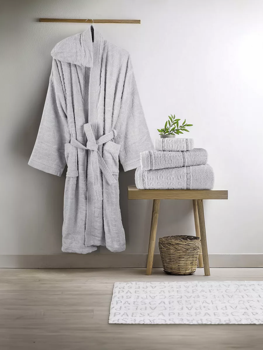 Το βαμβακερό σετ πετσέτας spa έχει σώμα με υπέροχη αφράτη υφή σε διαχρονική ανοικτόχρωμη απόχρωση του γκρι. Στολίζεται από εκλεπτυσμένη jacquard μπορντούρα με επαναλαμβανόμενο μοτίβο της λέξης escape, που προσθέτει μια διακριτική πινελιά κομψότητας. Το απαλό γκρι χρώμα της πετσέτας εναρμονίζεται πλήρως με την μπορντούρα που είναι σε ίδιους χρωματικούς τόνους, δίνοντας ένα εκλεπτυσμένο αισθητικό αποτέλεσμα. Συνδυάστε τις με το ασορτί μπουρνούζι και το πατάκι spa, εξυπηρετώντας απόλυτα τις χρηστικές απαιτήσεις σας με απόλυτο στυλ. Προσφέρεται σε σετ τριών τεμαχίων, δεμένο με μια όμορφη διακριτική κορδέλα και είναι ιδανικό για δώρο σε αγαπημένους σας φίλους.