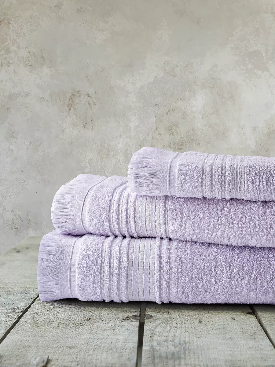 Οι βαμβακερές πετσέτες allora lilac έχουν πλούσια υφή και μοντέρνο παστέλ λιλά χρώμα. Το τελείωμα της κάθε πετσέτας στολίζεται με γραμμικά σιρίτια σε χρωματική αρμονία με την βάση της, ενώ διακριτικά κρόσσια της δίνουν μια έξτρα κίνηση και εκλεπτυσμένη όψη. Θα ξεχωρίσουν για την λιτή αισθητική και την ποιότητά τους. Προσφέρονται μεμονωμένες και σε σετ τριών τεμαχίων που περιλαμβάνει μία πετσέτα μπάνιου μια προσώπου και μια χεριών. Αναβαθμίστε την εμπειρία του μπάνιου σας με την πετσέτα "allora", η οποία συνδυάζει την απαλότητα με ένα μοντέρνο και διακριτικό σχέδιο. Ιδανική για όσους αναζητούν την κομψότητα στην απλότητα.