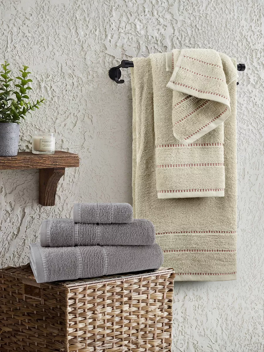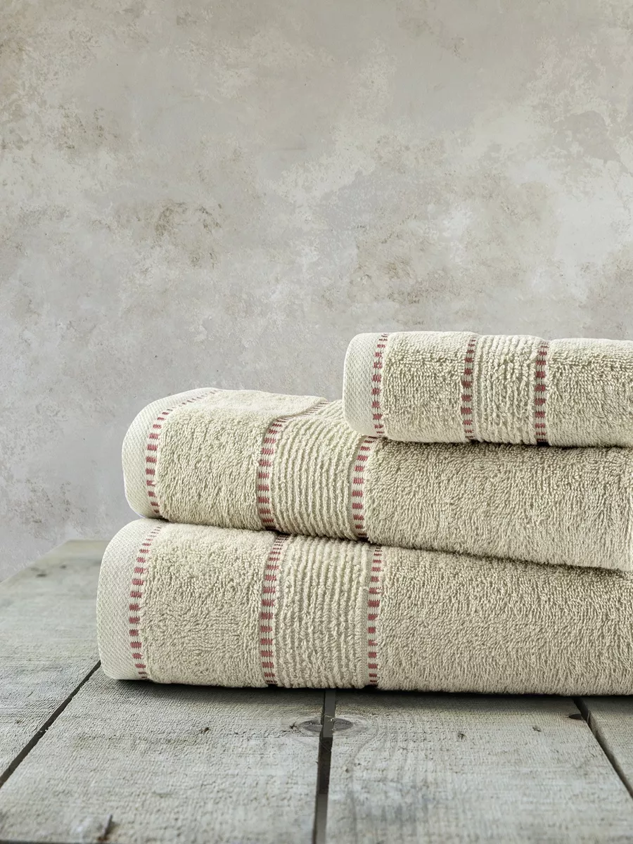 Το βαμβακερό σετ πετσέτες pivot beige παρουσιάζεται σε ένα ζεστό μπεζ χρώμα, μια απόχρωση που παραπέμπει στην διαχρονικότητα του σχεδίου. Στο κάτω μέρος, ξεχωρίζει μοτίβο με ρίγες στον ίδιο χρωματικό τόνο, πλαισιωμένες από λεπτότερες ανάγλυφες γραμμές σε γλυκό χρώμα τερακότας. Αυτή η διάταξη δημιουργεί ένα παιχνίδι υφών και αποχρώσεων, προσδίδοντας στην πετσέτα μια διαχρονική κομψότητα χωρίς υπερβολές. Το σετ πετσέτες pivot beige είναι η τέλεια επιλογή για να προσθέσετε έναν αέρα φρεσκάδας και διακριτικής πολυτέλειας στο μπάνιο σας, προσφέροντας ταυτόχρονα απαράμιλλη απαλότητα και απορροφητικότητα.