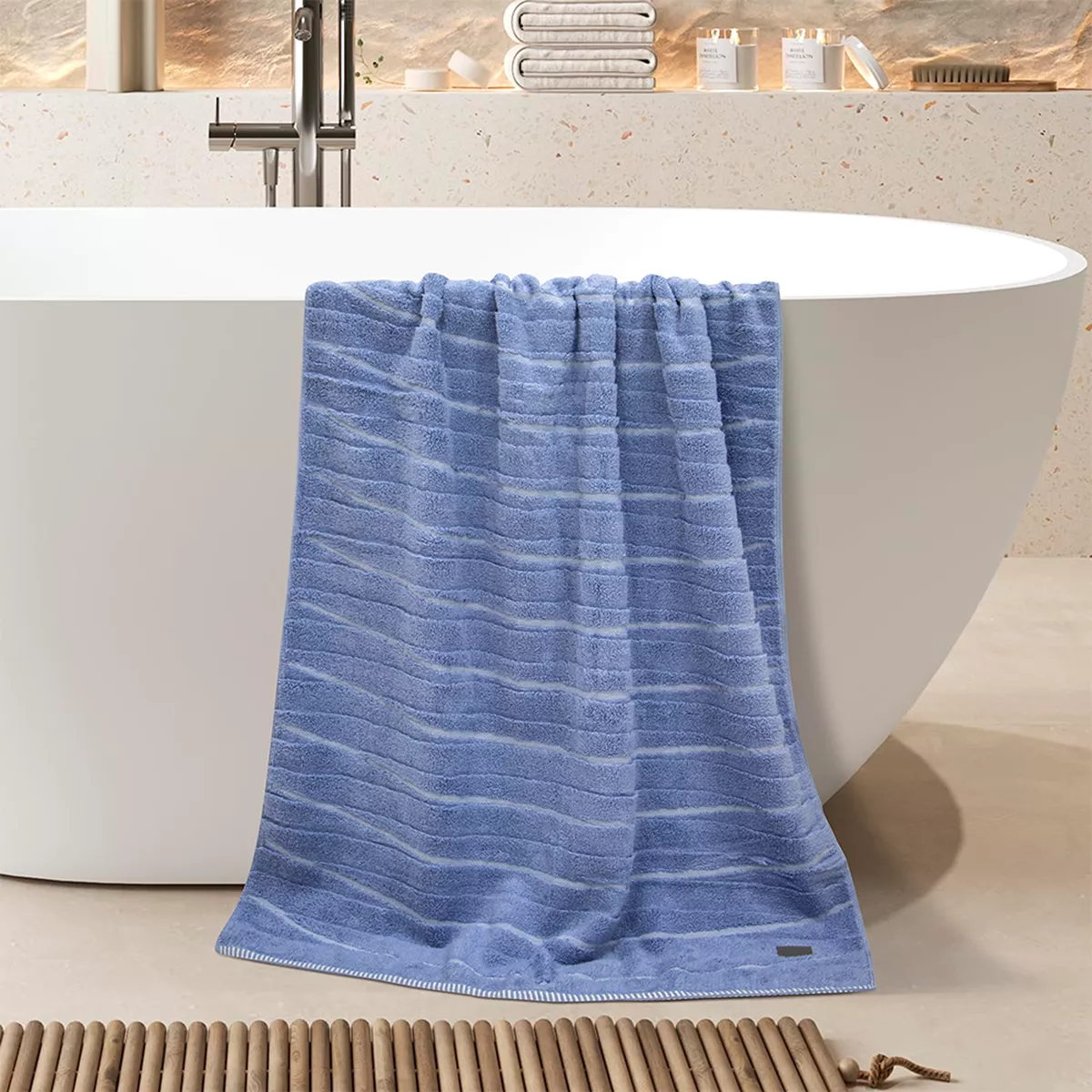 Πετσέτα σώματος Lino Home της σειράς Loomline σε διάσταση 80x150 εκατοστών. Είναι από 100% βαμβάκι υψηλής ποιότητας με βάρος 600gr/m2, ιδιαίτερα απορροφητική και ανθεκτική, ενώ τα χρώματα που χρησιμοποιούνται είναι ανεξίτηλα και υποαλλεργικά. Επιλέξτε πετσέτες Lino Home για να απολαύσετε ποιότητα, στυλ και πολυτέλεια. Πλύσιμο έως τους 60°C. Σιδέρωμα σε μέτρια θερμοκρασία. Όχι χρήση χλωρίου ή λευκαντικού. Χρήση στεγνωτηρίου σε χαμηλή θερμοκρασία. Όχι στεγνό καθάρισμα.
