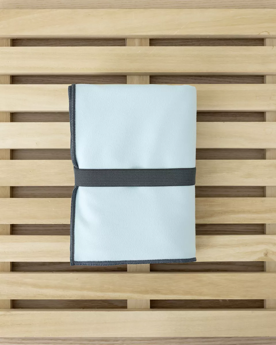 η πετσέτα γυμναστηρίου riva aqua έχει γαλάζιο χρώμα και σκούρο γκρι τελείωμα περιμετρικά. διαθέτει μια πρακτική θηλιά από φαρδύ λάστιχο στο ίδιο γκρι χρώμα που την τυλίγει όταν διπλώνει ώστε να κάνει εύκολη τη μεταφορά της στο γυμναστήριο και σε κάθε δραστηριότητα. είναι ιδανική για όσους αθλούνται καθώς στεγνώνει και καθαρίζει εύκολα, χαρίζοντας ταυτόχρονα ξεχωριστό στιλ.