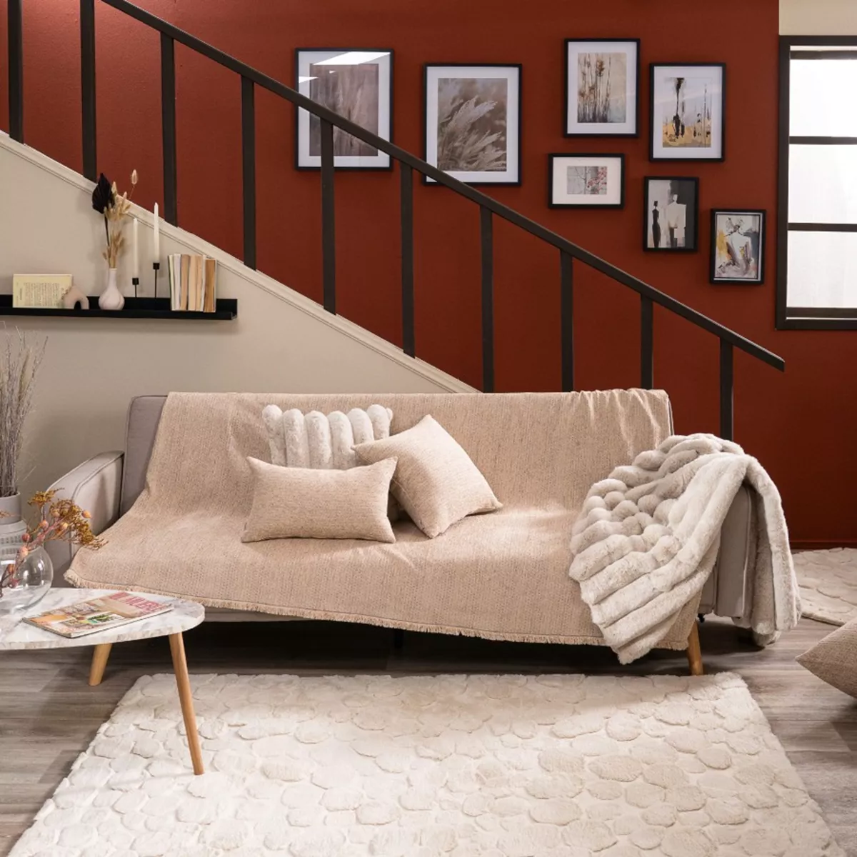 Τα υφάσματα υφαίνονται στην Ελλάδα από ελληνική υφαντουργία και μεταποιούνται από την εταιρία μας.Η σύνθεση του υφάσματος των ριχταριών αποτελείται από νήματα ακρυλικά σε ποσοστό 48%,βαμβακερά σε ποσοστό 30% και πολυεστερικά σε ποσοστό 22%.