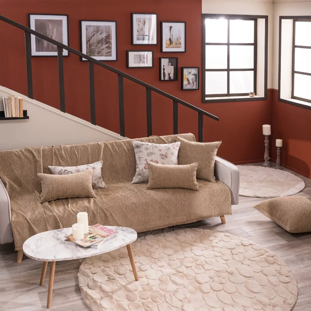 Τα υφάσματα υφαίνονται στην Ελλάδα από ελληνική υφαντουργία και μεταποιούνται από την εταιρία μας.Η σύνθεση του υφάσματος των ριχταριών αποτελείται από νήματα ακρυλικά σε ποσοστό 48%,βαμβακερά σε ποσοστό 30% και πολυεστερικά σε ποσοστό 22%.